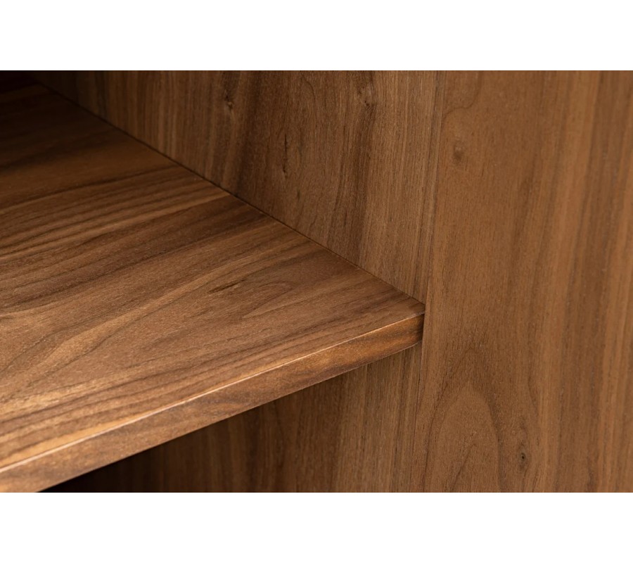 Úložný prostor je vyroben z dýhovaného ořechového dřeva ve světlé teplé hnědé barvě s pravidelnou tmavší kresbou letokruhů. Na vrchní a boční straně je organizována lineárně a na přední straně diagonálně. Na každých dvířkách má odlišné směřování a vytváří tak kompozici připomínající chevronový vzor.