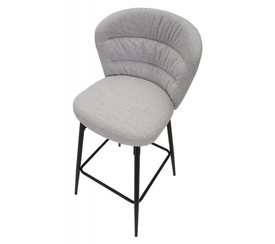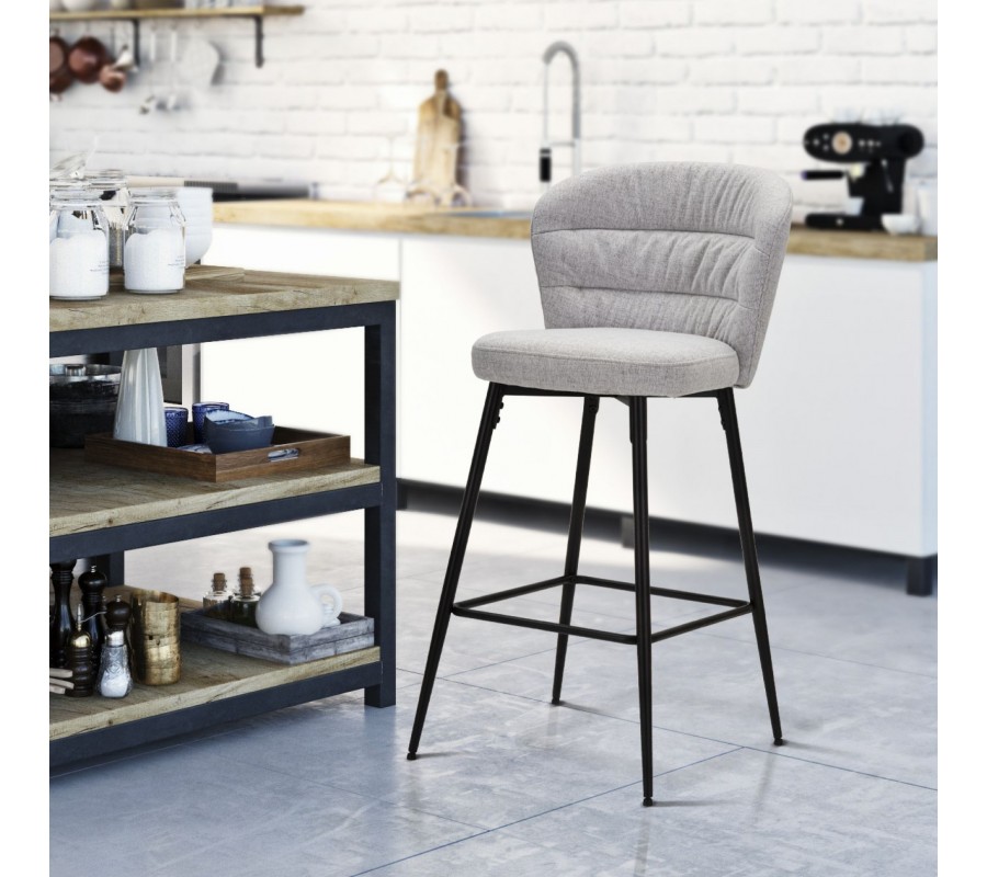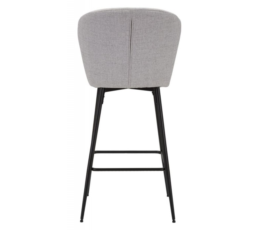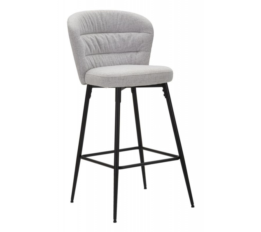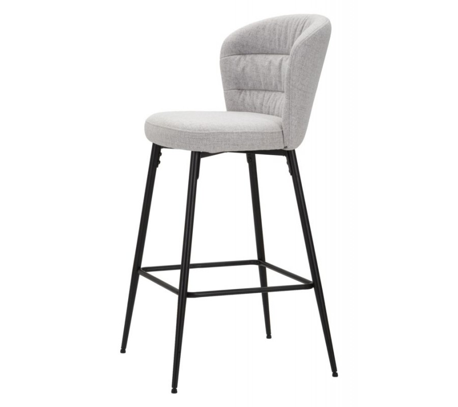 Moderní barová židle Magnus se světle šedým čalouněním z látky s ergonomickým opěradlem na černých kovových nohách 108 cm