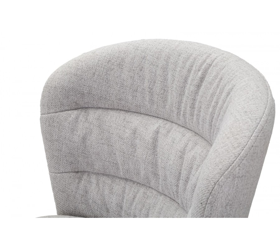 Sedací část s měkkým pěnovým čalouněním je pokryta kvalitní textilií, která je příjemná na dotek a odolná vůči oděru. Díky jejímu světle šedému odstínu působí židle elegantně a snadno zapadne do různých interiérových stylů.