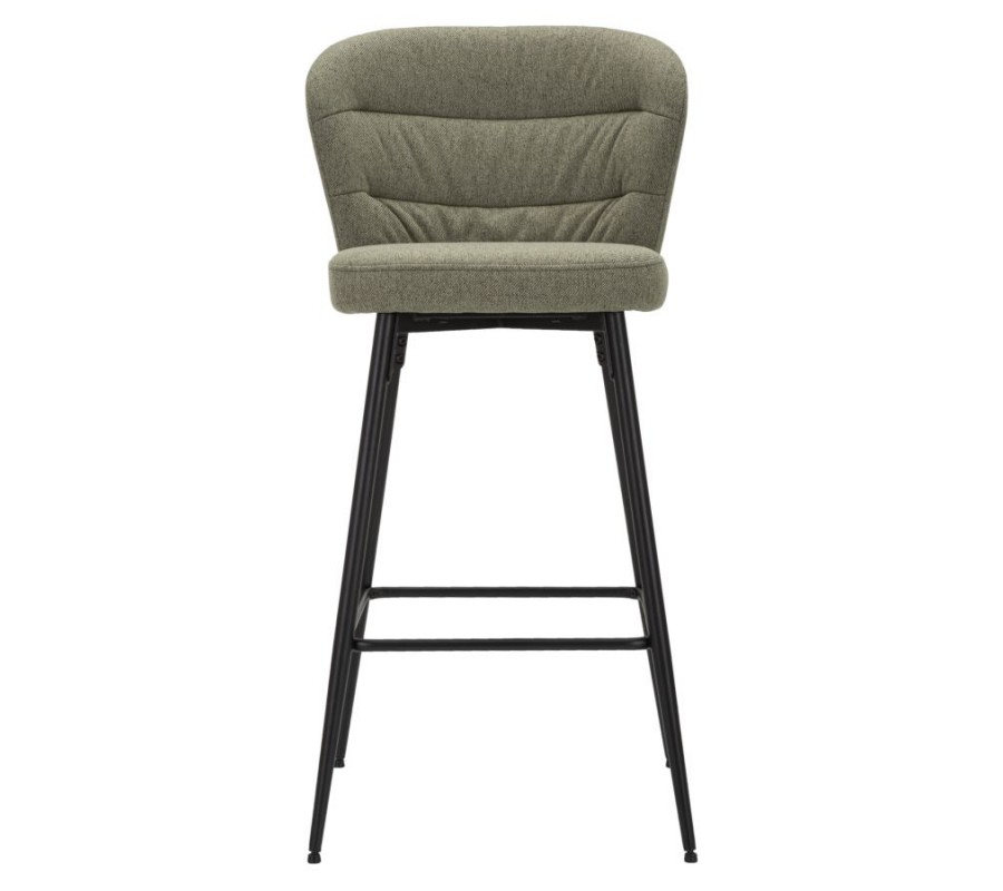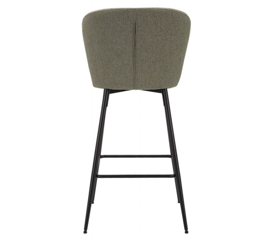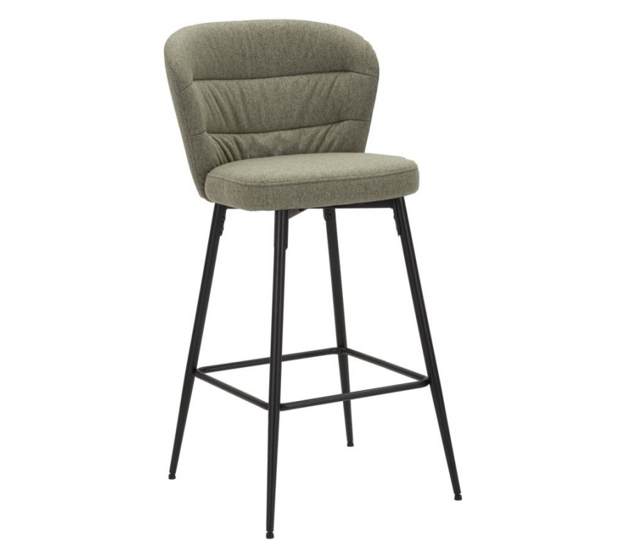 Moderní barová židle Magnus se zakřiveným opěradlem a textilním potahem v olivově zelené barvě na černých nožičkách 108 cm