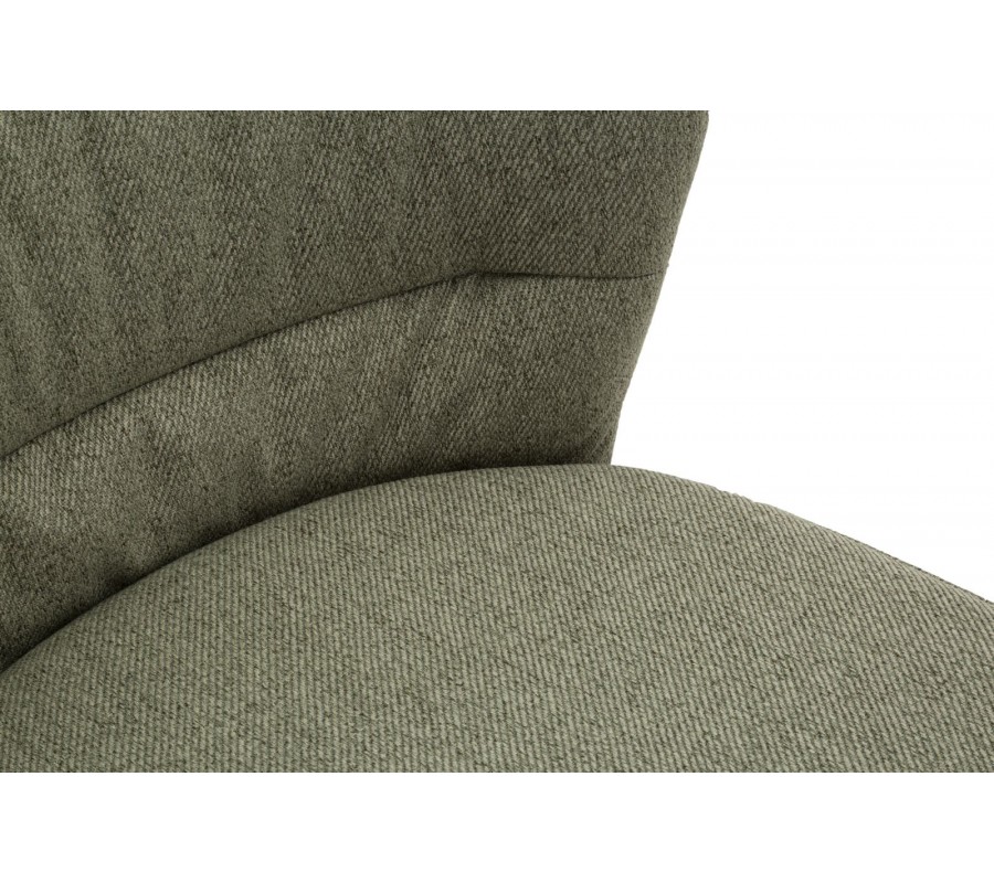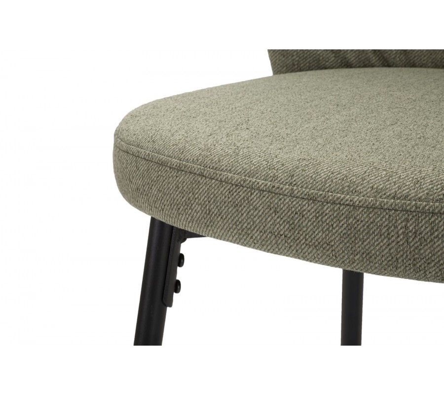 Sedací část je potažena kvalitní textilií v olivově zelené barvě, >výrazným tkaním a příjemnou strukturou na dotek. Měkké pěnové čalounění zajišťuje pohodlí i při delším sezení, díky čemuž je židle ideální pro každodenní použití.
