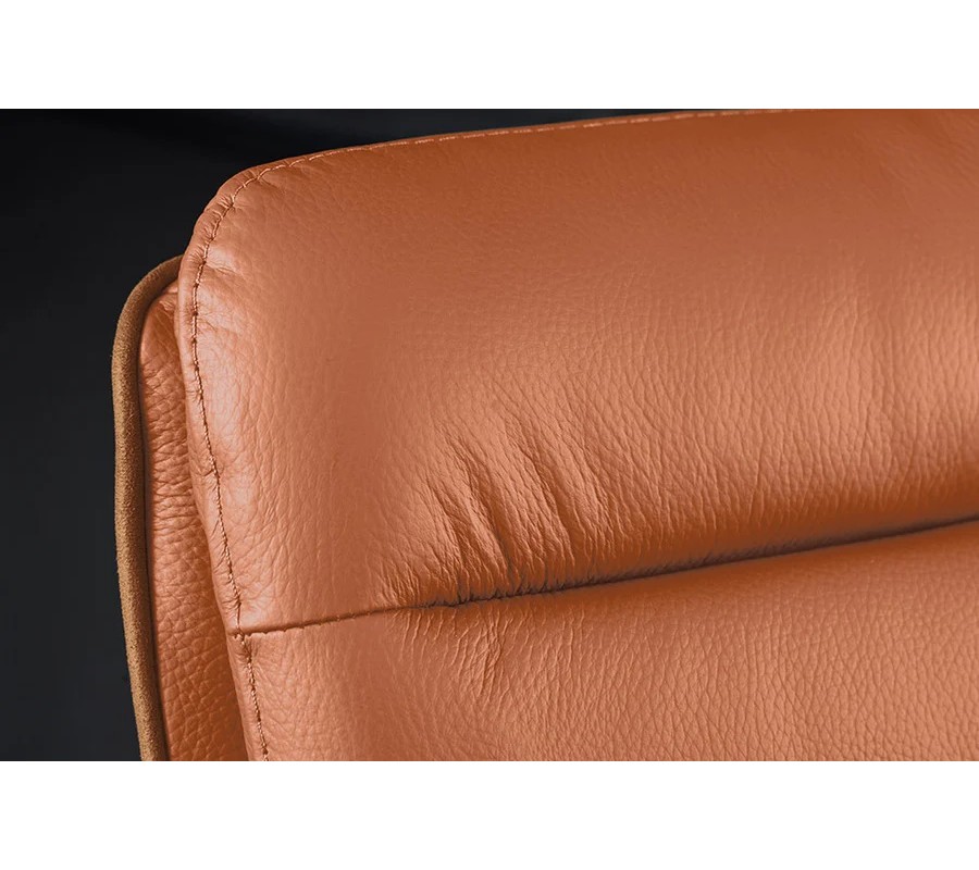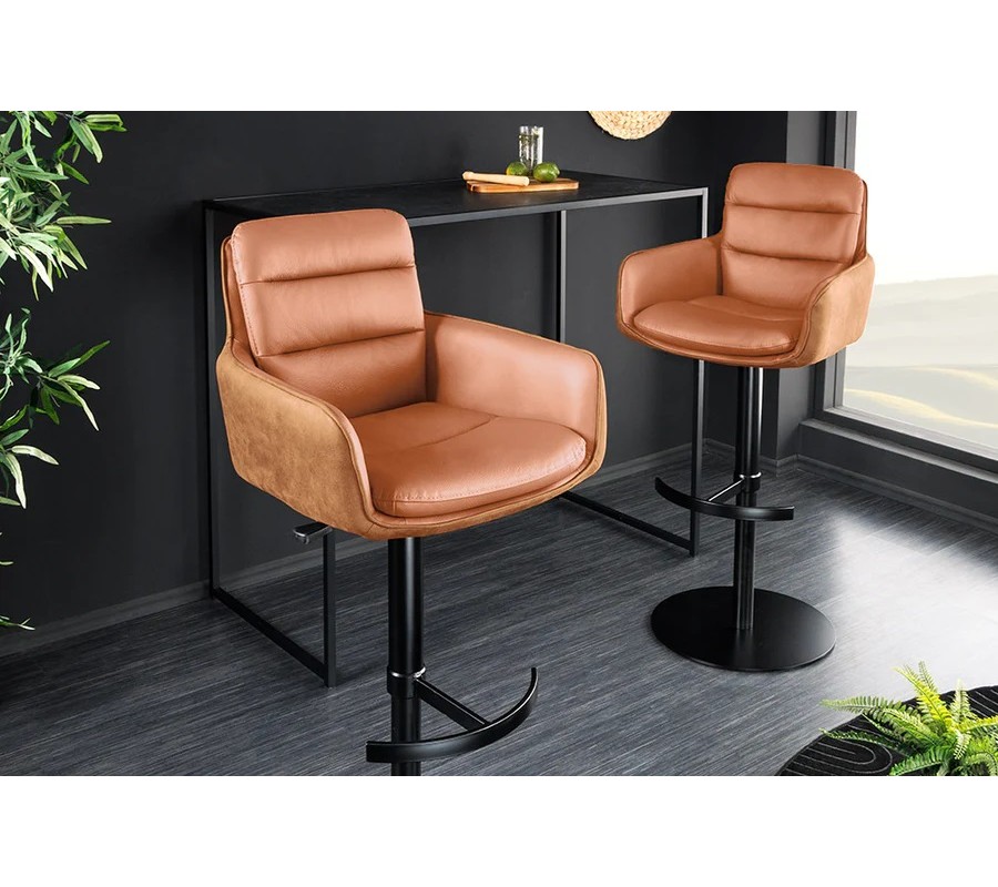Barová židle Dover v teplé hnědé barvě spojuje moderní a industriální styl s funkčností a pohodlím. Vnitřní části sedáku, opěrek a opěradla jsou potaženy přírodní kůží, která je odolná, příjemná na dotek a působí luxusně. Zádové opěradlo je zdobeno dvěma vodorovnými prošívanými pásy, které dodávají sedací části elegantní strukturu. Dvě opěrky na ruce plynule navazují na sedací a opírací část židle.