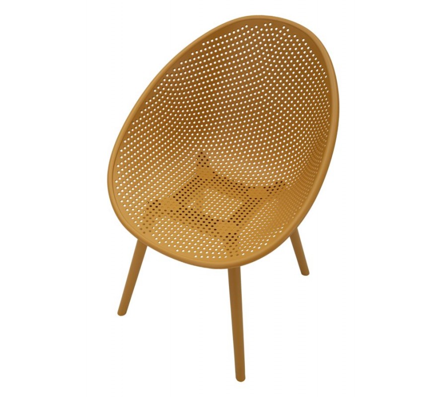 Moderní designová žlutá jídelní židle Isola s kulatou sedací částí s perforovaným vzorem 59 cm