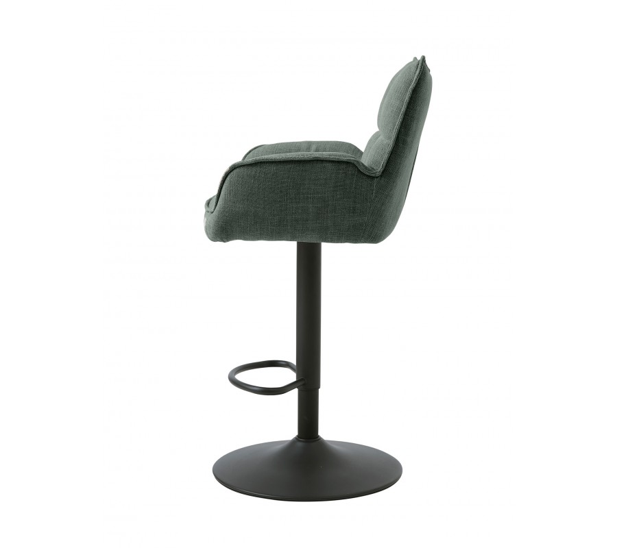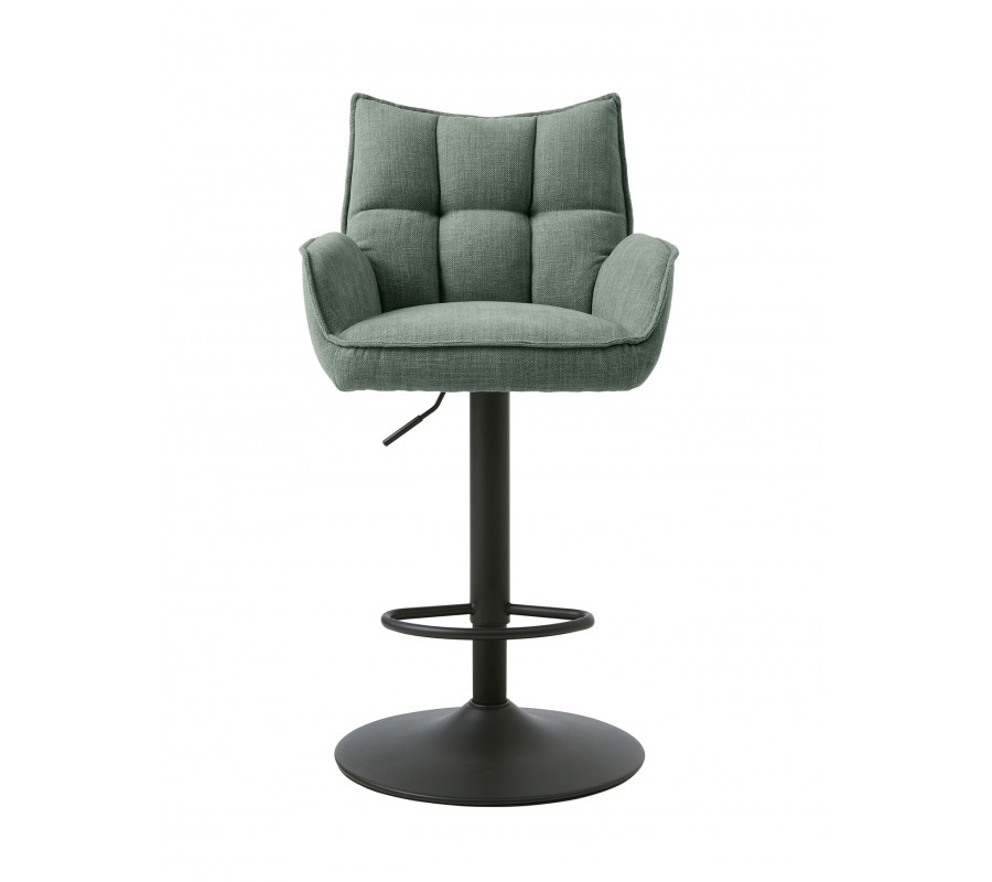 Moderní výškově nastavitelná barová židle Laerke se šalvějovým zeleným žinylkovým potahem a černou nohou 99-114 cm