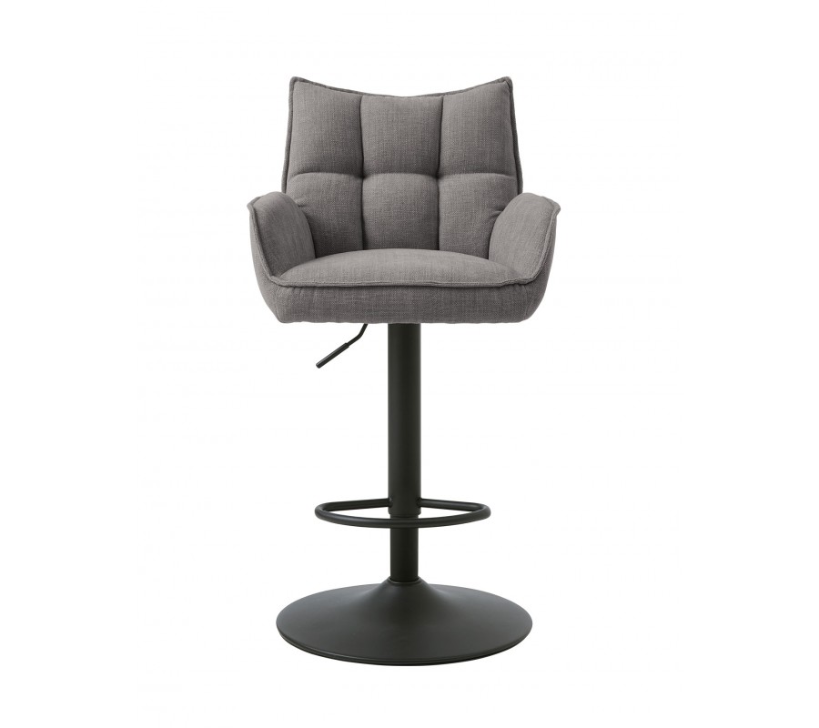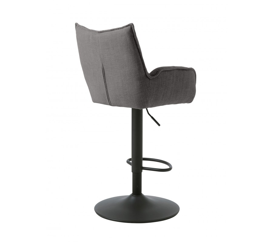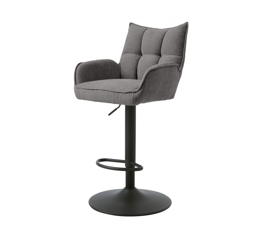 Industriální šedá barová židle Laerke s žinylkovým potahem a opěrkami na ruce s černou výškově nastavitelnou nohou 99-114