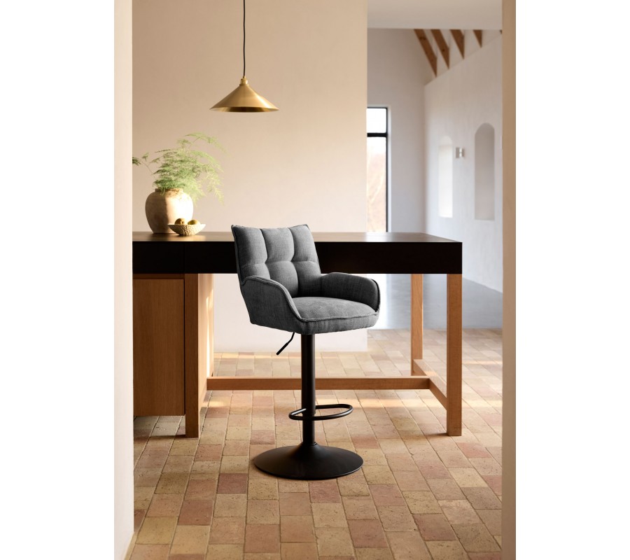 Barová židle Laerke představuje stylové propojení industriálních prvků s moderním designem. Praktickou výhodou je i možnost nastavení výšky sedu v rozmezí od 67 do 82 cm, díky čemuž se snadno přizpůsobí různým typům barových stolů.