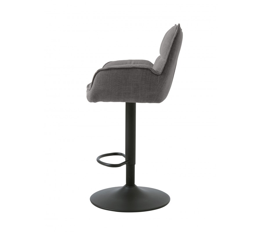 Industriální šedá barová židle Laerke s žinylkovým potahem a opěrkami na ruce s černou výškově nastavitelnou nohou 99-114