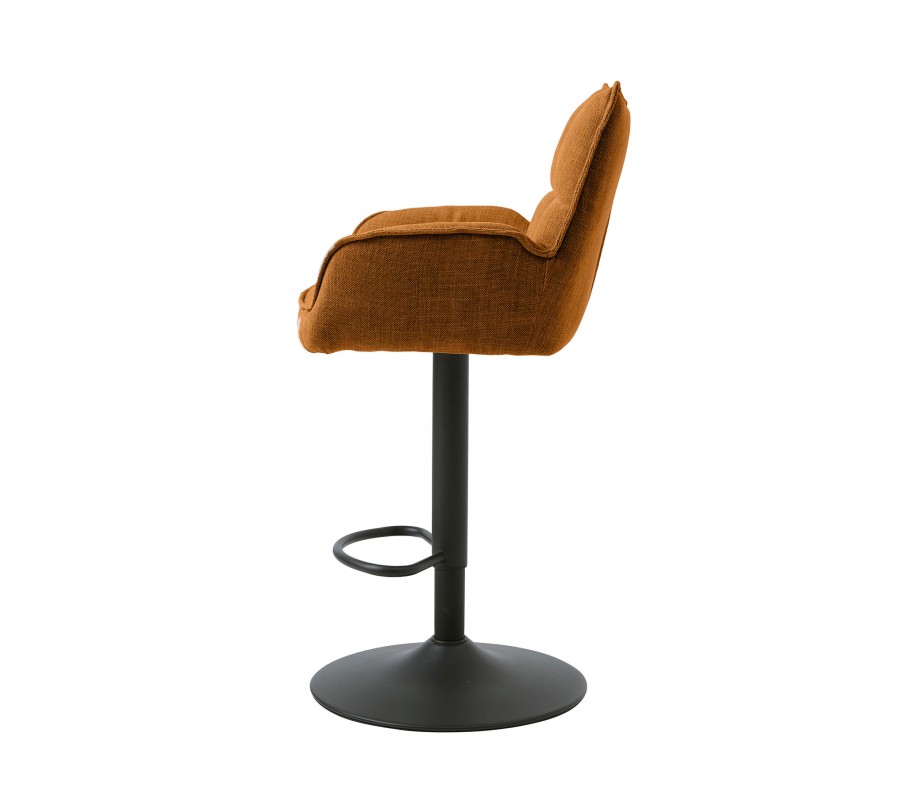Moderní výškově nastavitelná barová židle Laerke s rezavě oranžovým žinylkovým potahem a černou kovovou nohou 99-114 cm