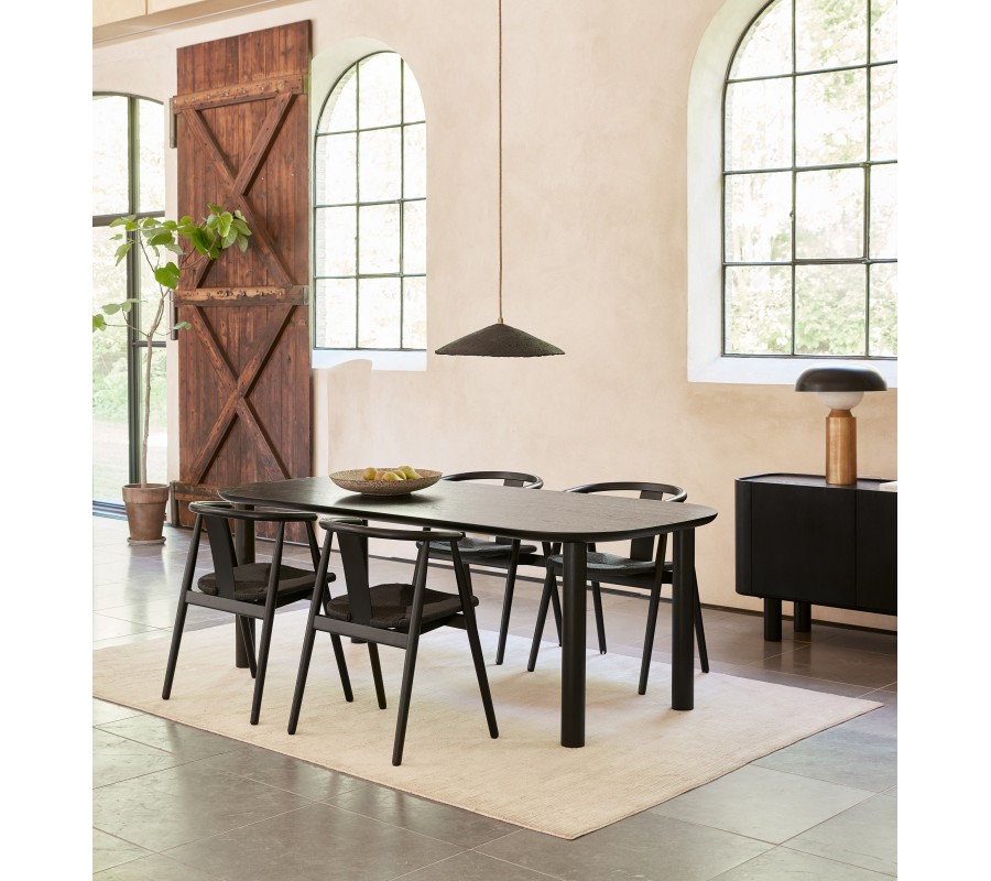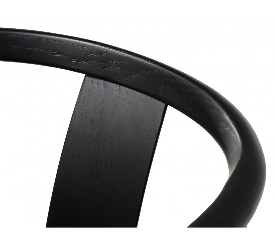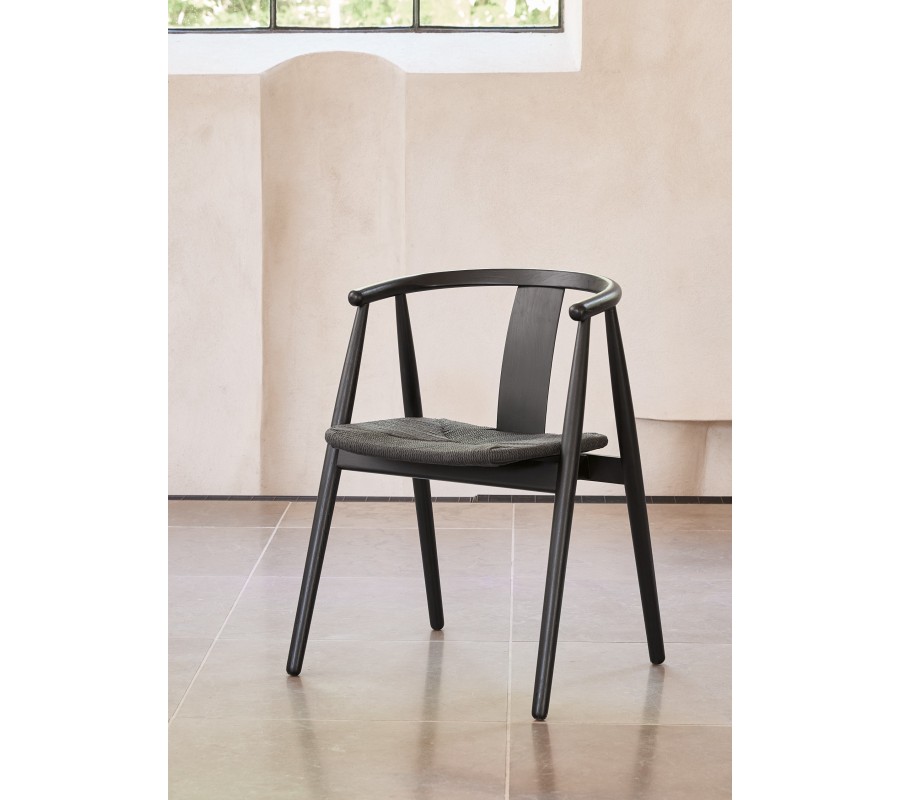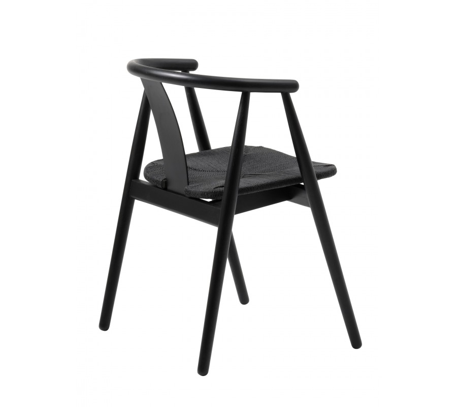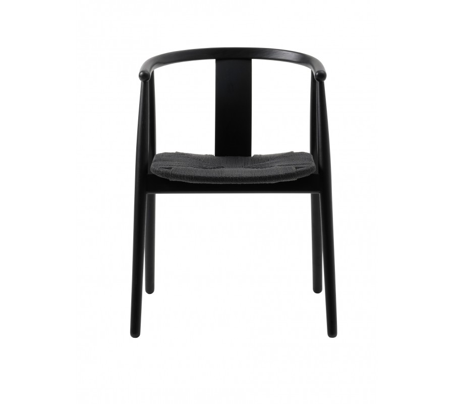 stolička má konstrukci vyrobenou z masivního dubového dřeva, které jí zaručuje vysokou odolnost i při intenzivním každodenním používání. Sedadlo doplňuje výplet z pevného papírového kordu - přírodního vlákna, známého svojí dlouhou životností, který patří mezi populární materiály ve skandinávském designu. Provedení v černé barvě zachovává viditelnoustrukturu dřeva i naturální charakter výpletu a dodává tak židli hřejivý severský výraz.