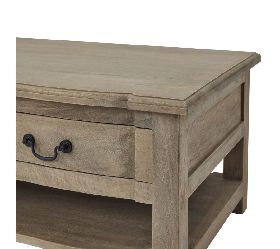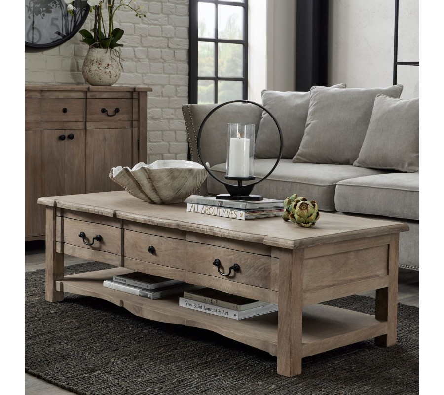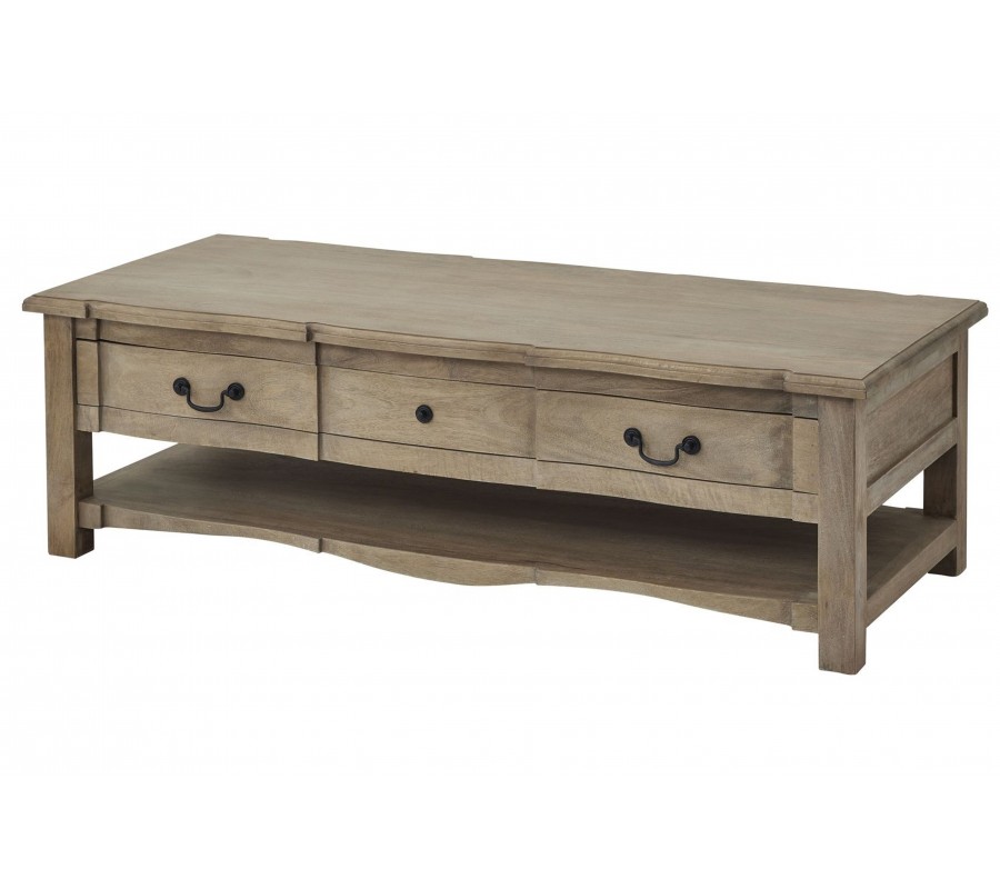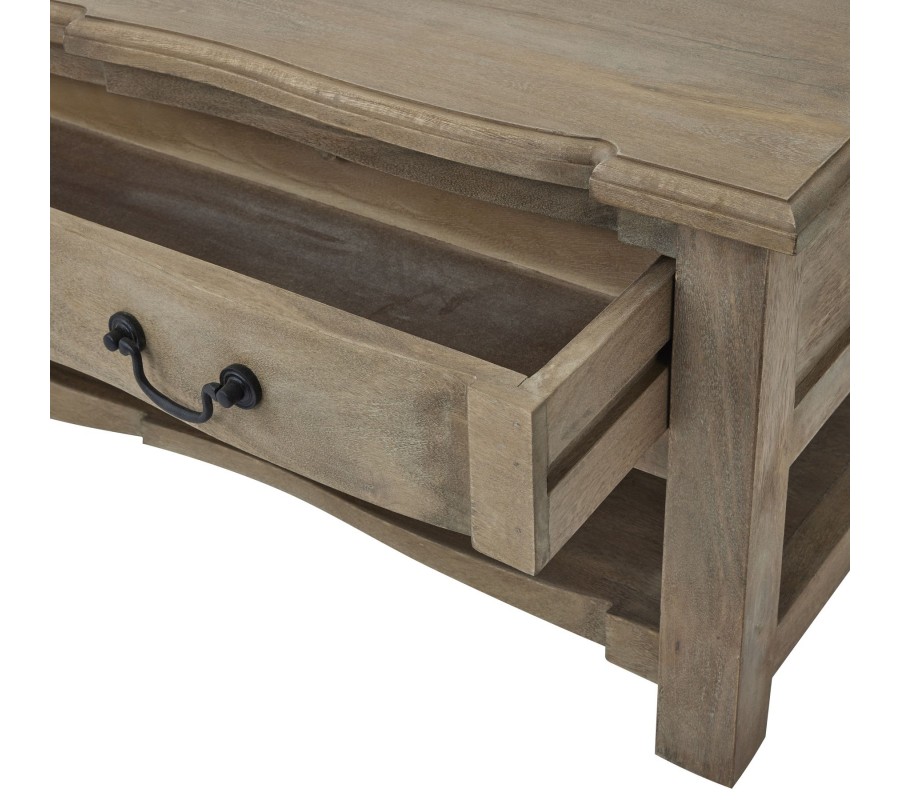 Luxusní obdélníkový konferenční stolek Antiquités Francaises ve venkovském stylu se dvěma šuplíky a policí světle hnědá 140 cm