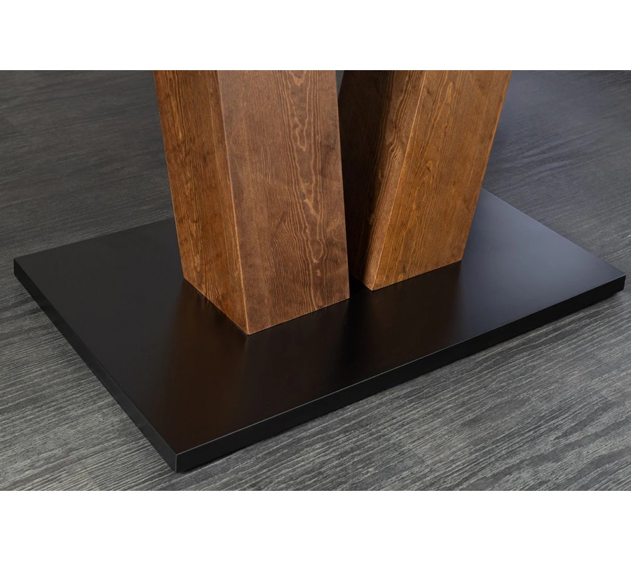 Spodní část dodává nábytku moderní skulpturální vizuál. Tvoří ji dve nohy ve tvar mohutných hranolů, které jsou mírně sešikmené a působí tak dynamickým dojmem. Jsou ukotveny na ploché obdélníkové podstavě v černé barvě.