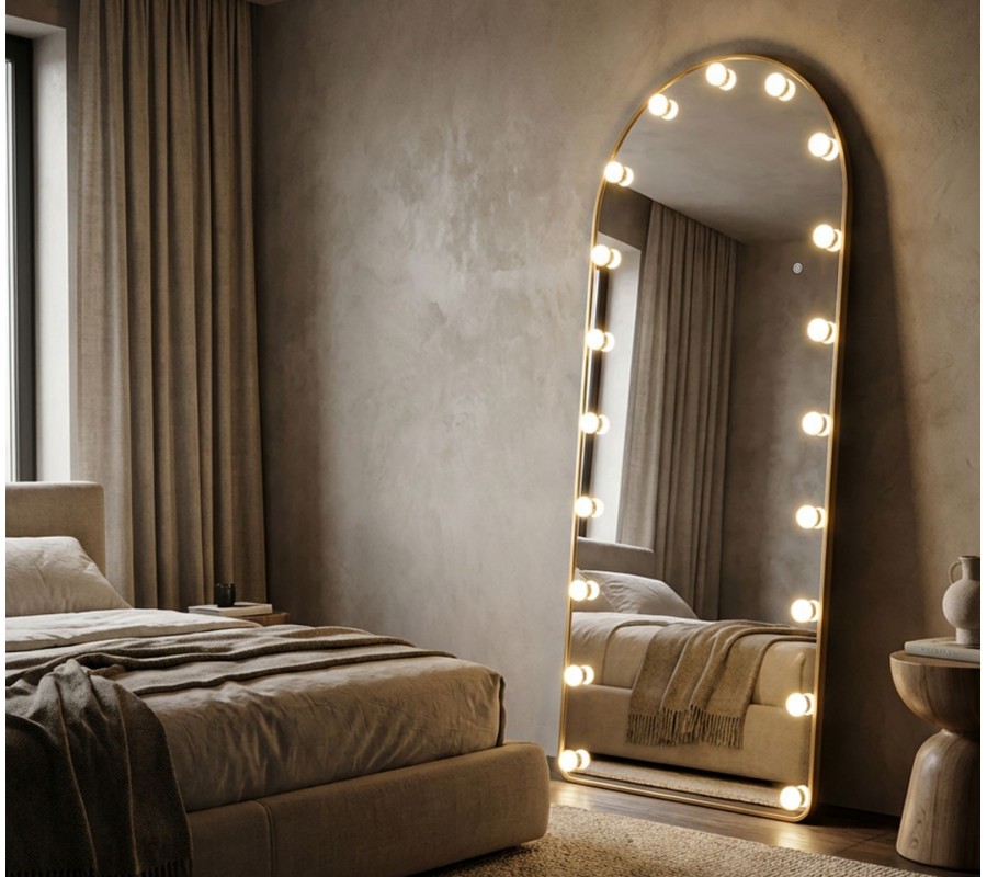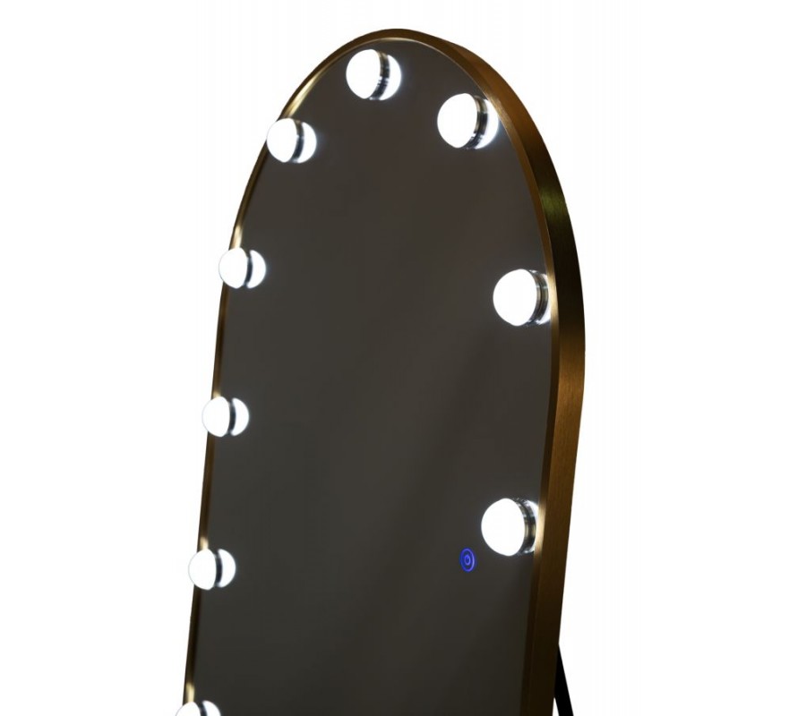 Zrcadlo je vybaveno dotykovým ovládáním osvětlení, které zajišťuje komfortní a rovnoměrné světlo ideální pro líčení, úpravu vlasů či každodenní péči o vzhled. Po obvodu jsou umístěny žárovky, které dodávají zrcadlu ikonický glamour vzhled inspirovaný art deco a backstage stylem. Praktický stojan umožňuje zrcadlo volně postavit a polohovat podle potřeby, zatímco zadní kabel do elektrické zásuvky zajišťuje snadné používání.