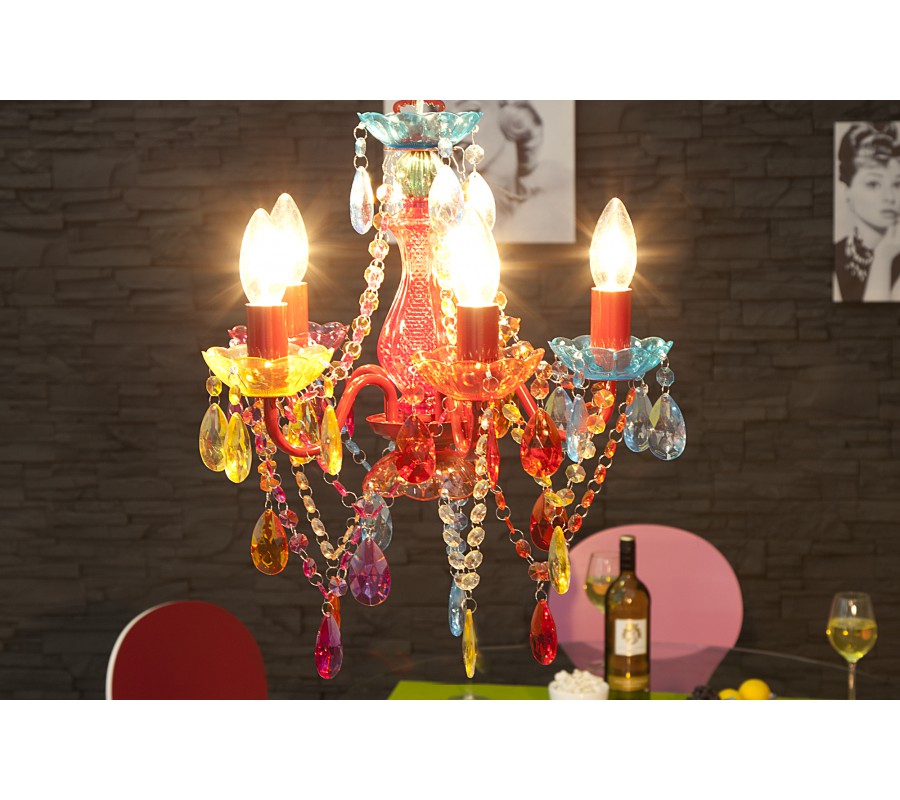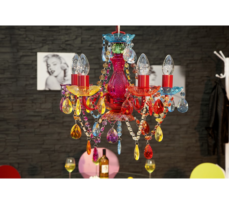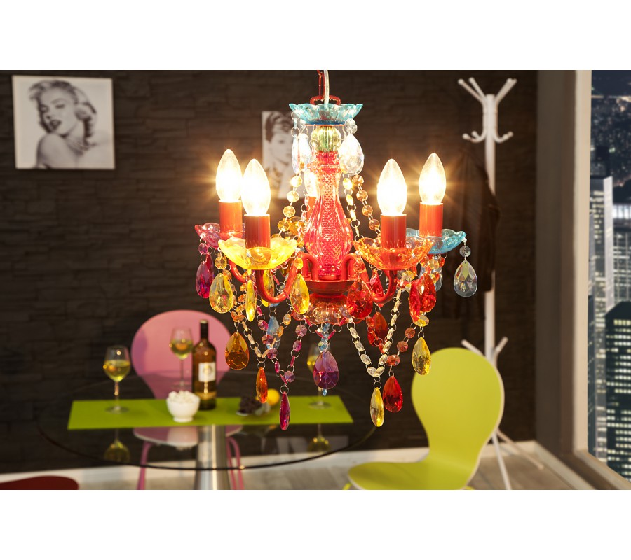 Designový originální lustr Karat S má osvětlení umístěné na pěti ramenech a je bohatě zdobený barevnými prvky. Rozměry: 41cm x 37cm (VxØ) Originální lustr Karat S je vyroben z kvalitního kovu, akrylu. Světelný zdroj: 5 x E14 max. 25W. Energetická třída: A ++ až E. Žárovky nejsou součástí dodávky.