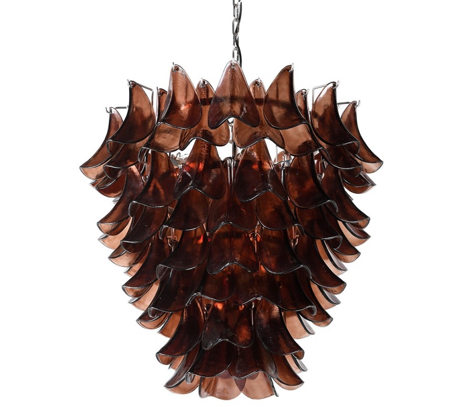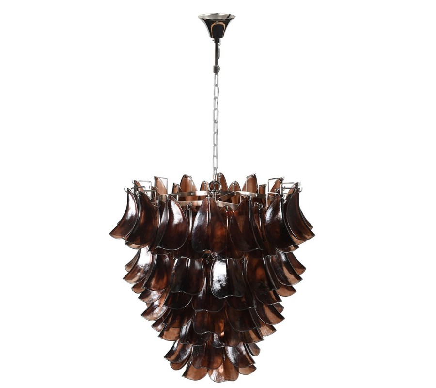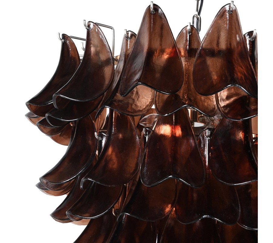 Luxusní glamour lustr Autumn z hnědého tónovaného skla se stínítkem s designem listů 80 cm