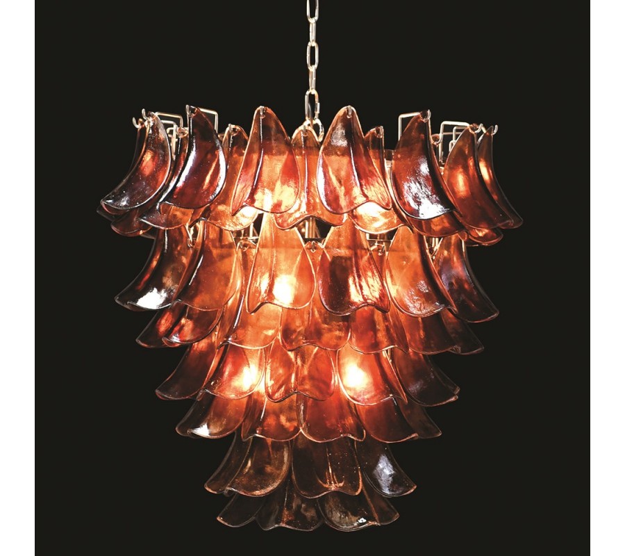 Lustr má kovovou konstrukci složenou z více nad sebou umístěných kružnic, jejichž průměr se směrem dolů zužuje a vytváří tak elegantní siluetu ve tvaru V. Na každé úrovni jsou ke konstrukci přichyceny pomocí háků důkladně tvarovaný vizuál. Každý list má dlouhý oválný tvar, s výrazným vertikálním složením a mírným prohnutím do půloblouku.