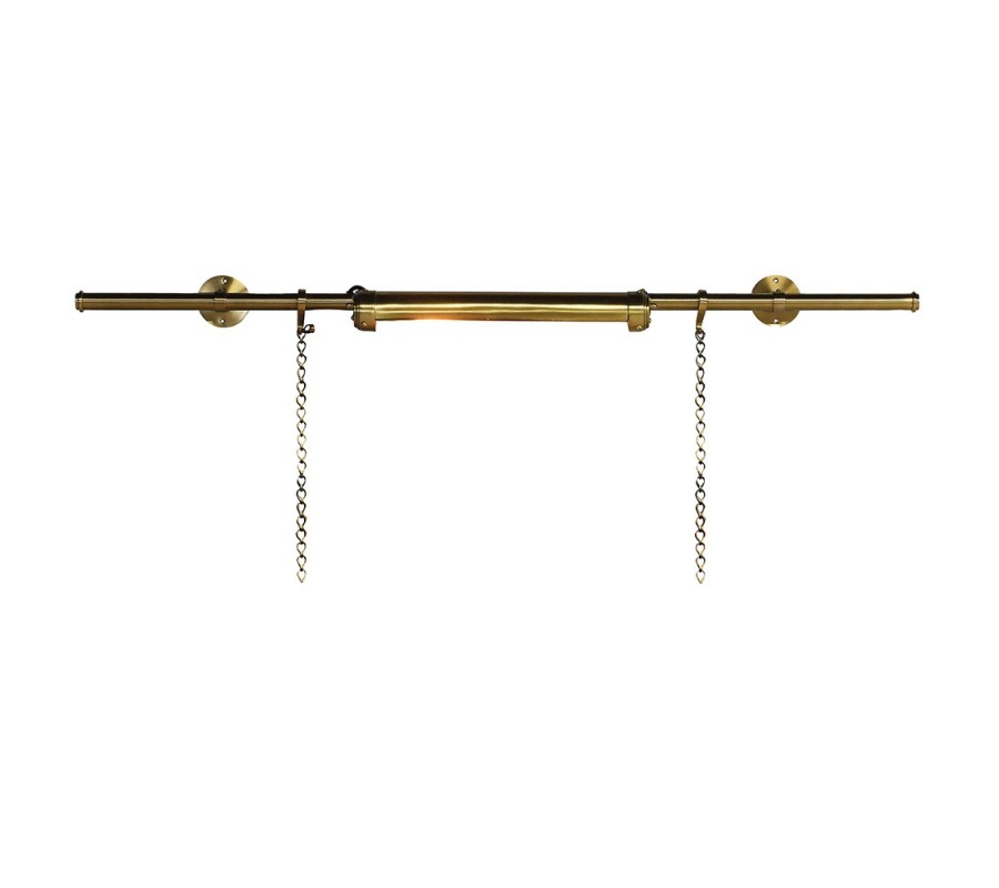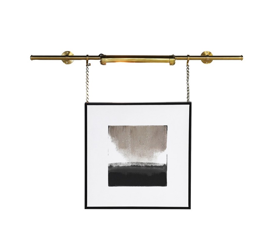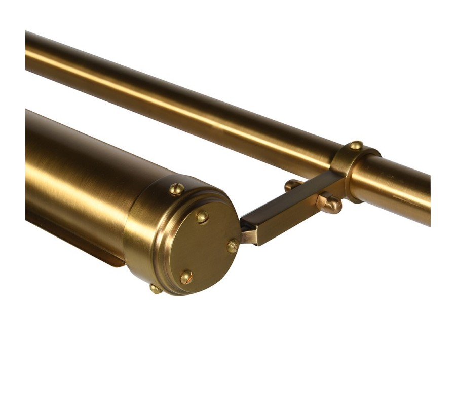 Centrální osu lampy tvoří horizontální válcovitá linie o délce 122 cm. Ze zadní strany jsou k ní upevněny kruhové úchytky, pomocí kterých se svítilna upevňuje ke stěně. Na přední straně je zase upevněna válcovitá konstrukce samotného svítidla s prostorem na žárovku typu E14 s maximálním příkonem 40 wattů. Na centrální ose jsou také zavěšeny dva háčky s řetízky, na které lze upevnit obraz. Jsou pohyblivé, takže jejich vzdálenost si můžete přizpůsobit podle potřeb vystaveného díla. Lampa je vyrobena z kombinace dřeva a mosazi ve zlatém provedení.