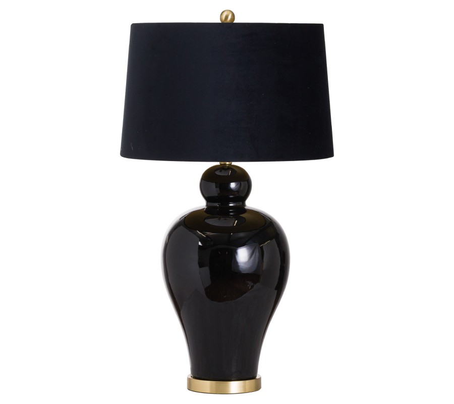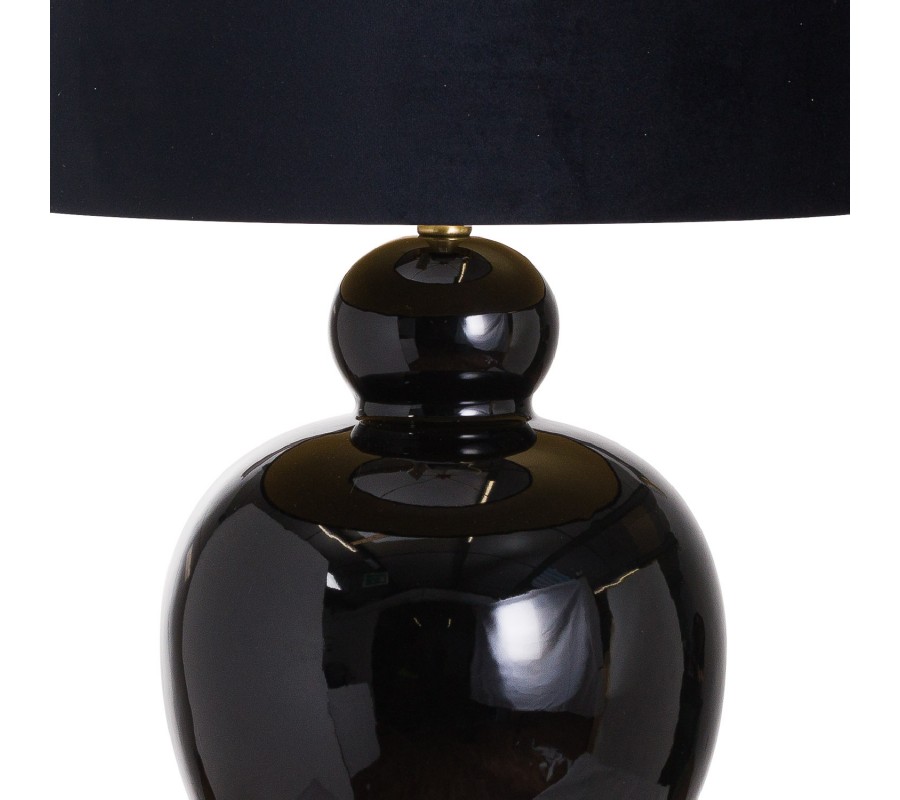 Stolní lampa Jabal díky své majestátní černé podstavě s elegantními zlatými prvky rozzáří bledý jemný interiér no nezanikne ani v kombinaci s tmavým masivním nábytkem či kovovým vzhledem stylu Art-deco. Výrazná podstava je doplněna sametovým černým textilním stínítkem kónického tvaru. Spojením lesklé černé barvy podstavy a luxus vzbuzujícího sametu v podobě stínítka se lampa Jabal stává nepřehlédnutelným nadčasovým prvkem každého interiéru. Keramická lampa Jabal je skvělým doplněním moderních obývacích místností, předsíní či ložnic.