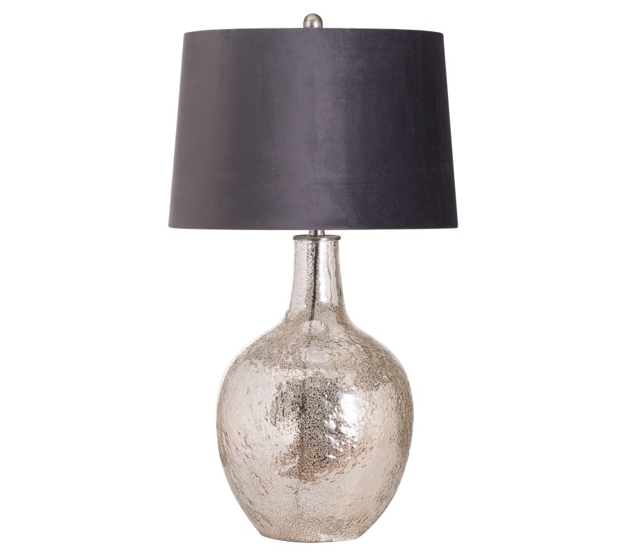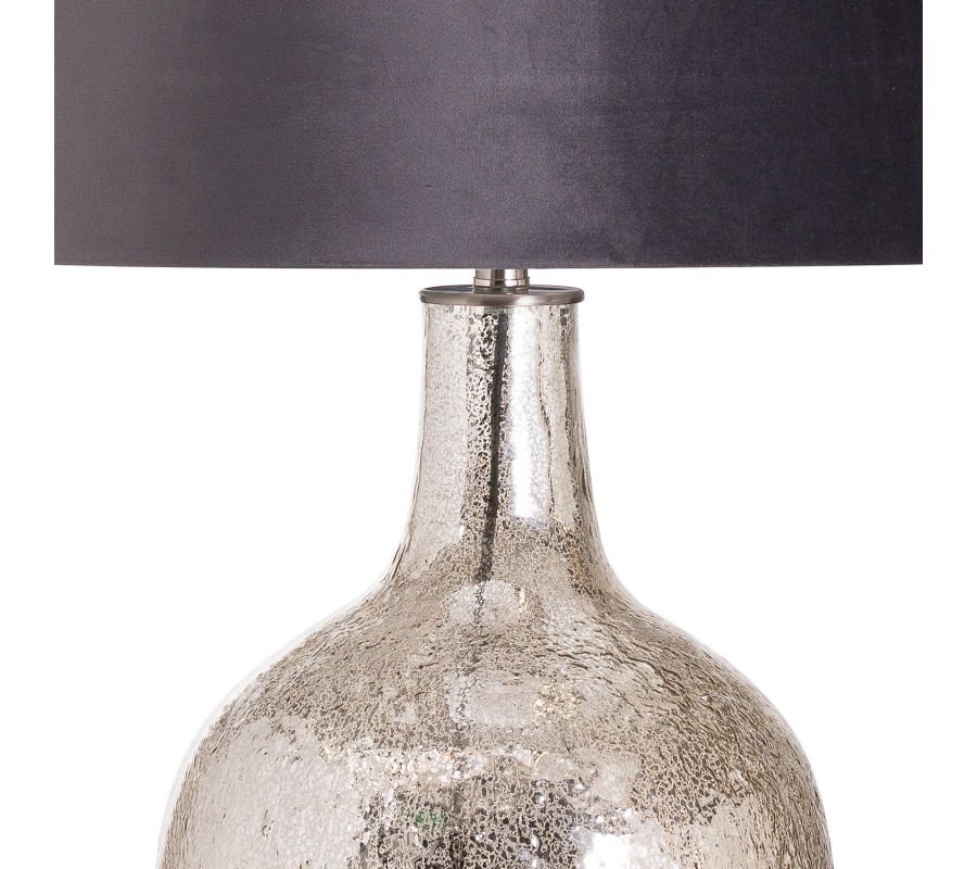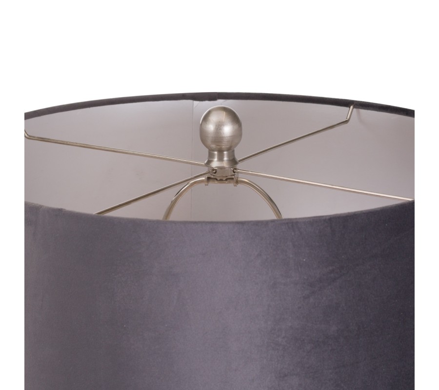 Stylová stříbrná keramická stolní lampa Concento s šedým sametovým stínítkem 78cm