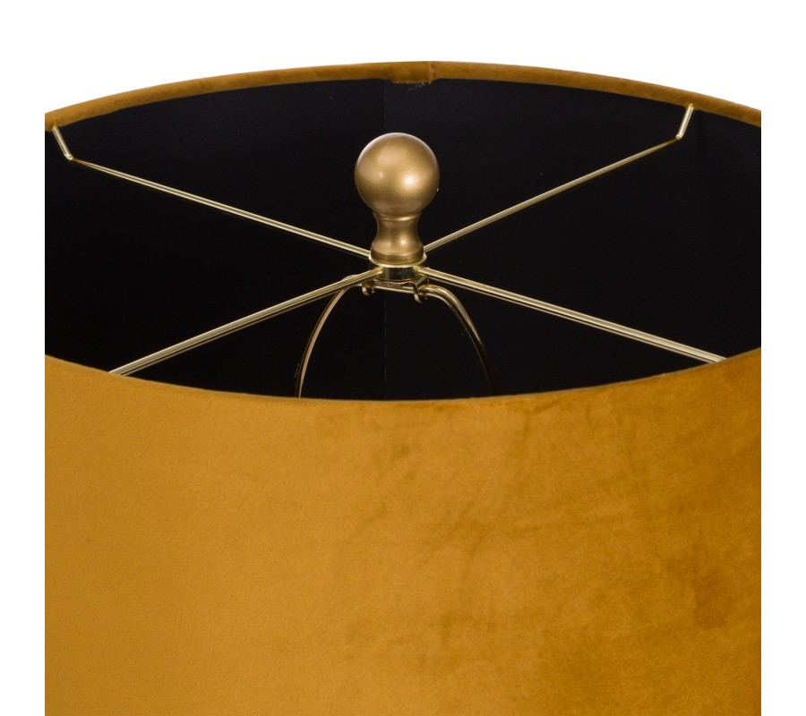 Art-deco designová černá stolní lampa Abeja s stínítkem hořčicové barvy