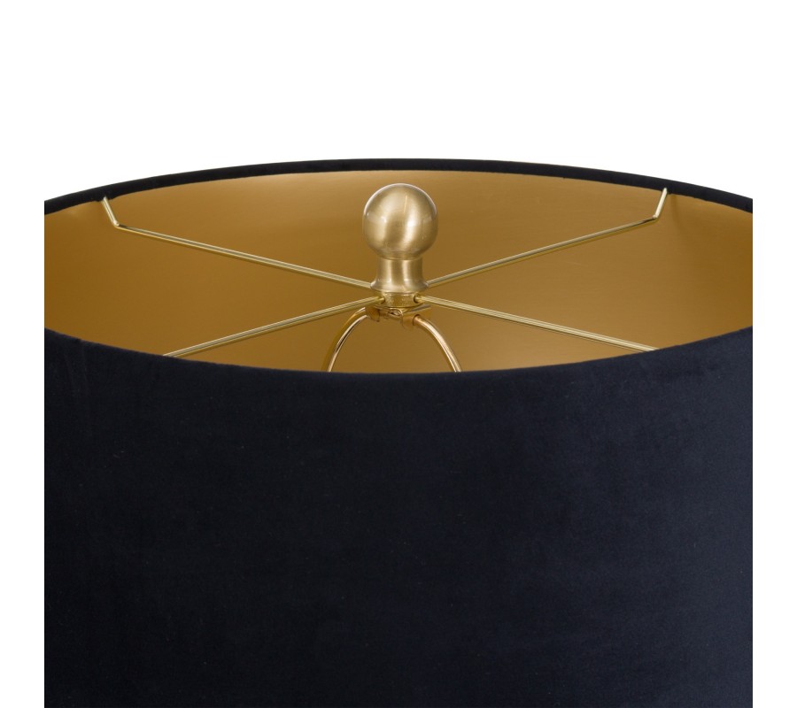 Art-deco nadčasová černá keramická stolní lampa Noirra se zlatými prvky a sametovým stínítkem 84cm