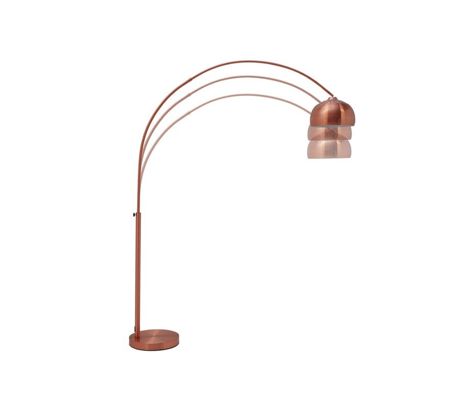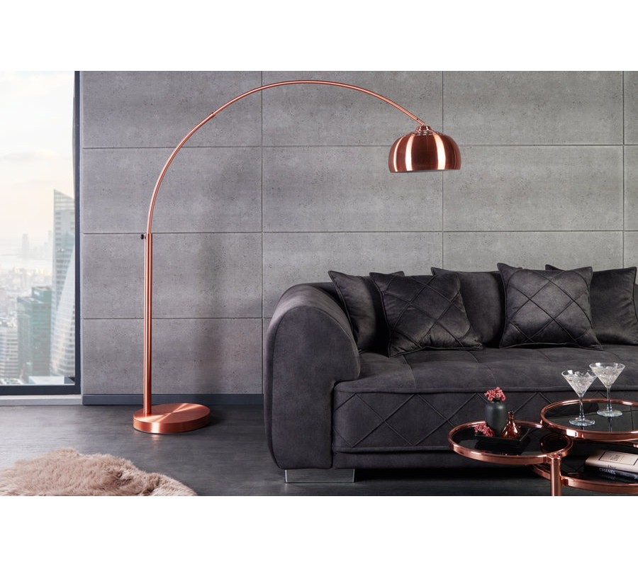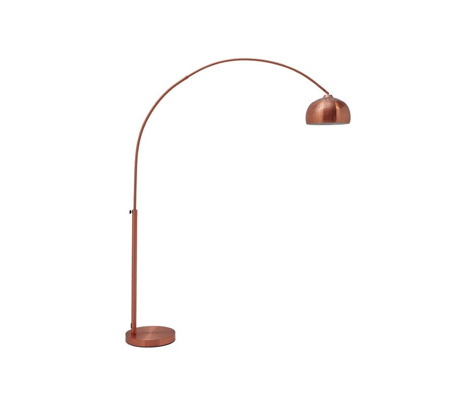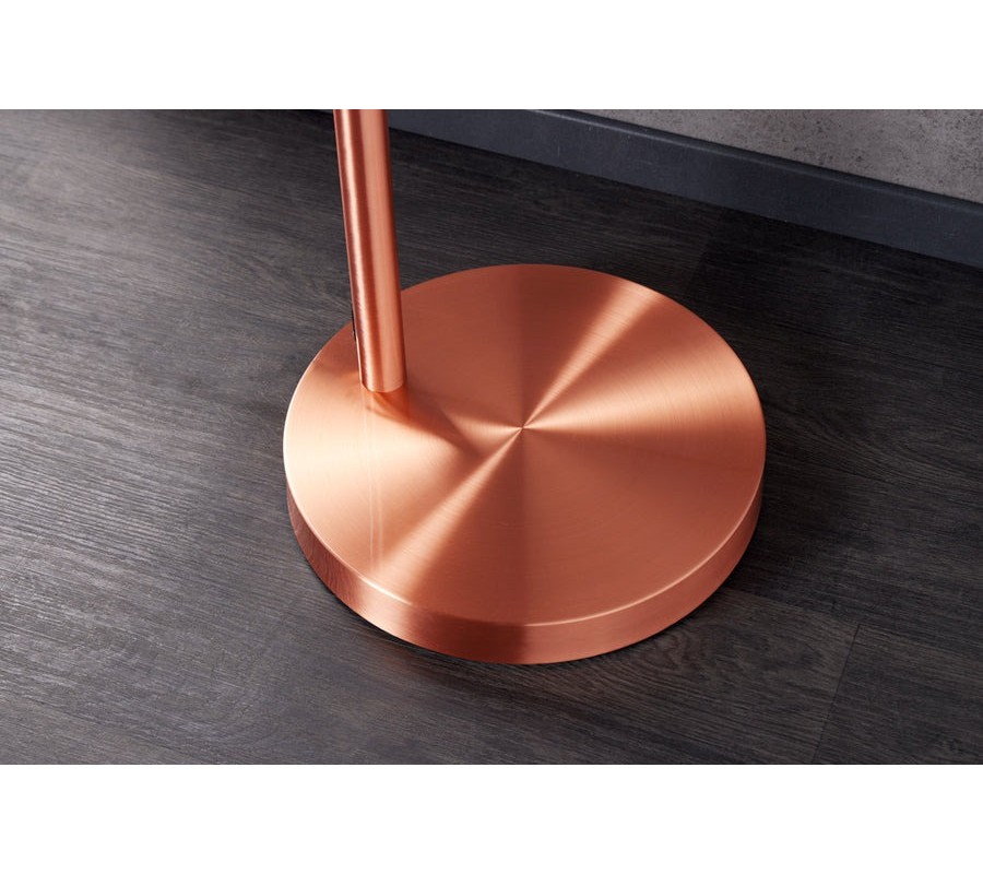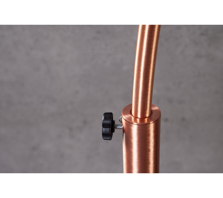Konstrukci tvoří tenká zaoblená noha, její tvar je výrazně zahnutý čímž tvoří nápaditý oblouk, zároveň je výškově nastavitelná a to až v rozmezí od 170 do 210 cm. Na spodní části elegantně přechází do kulaté podstavy. Stabilitu zajišťuje mramorové zpevnění ve spodní části kulaté podstavy, což zvyšuje pevnost a odolnost celé lampy. Lampa je vyrobena z kovu v měděné barvě s jemným leskem, který působí luxusně a nadčasově.