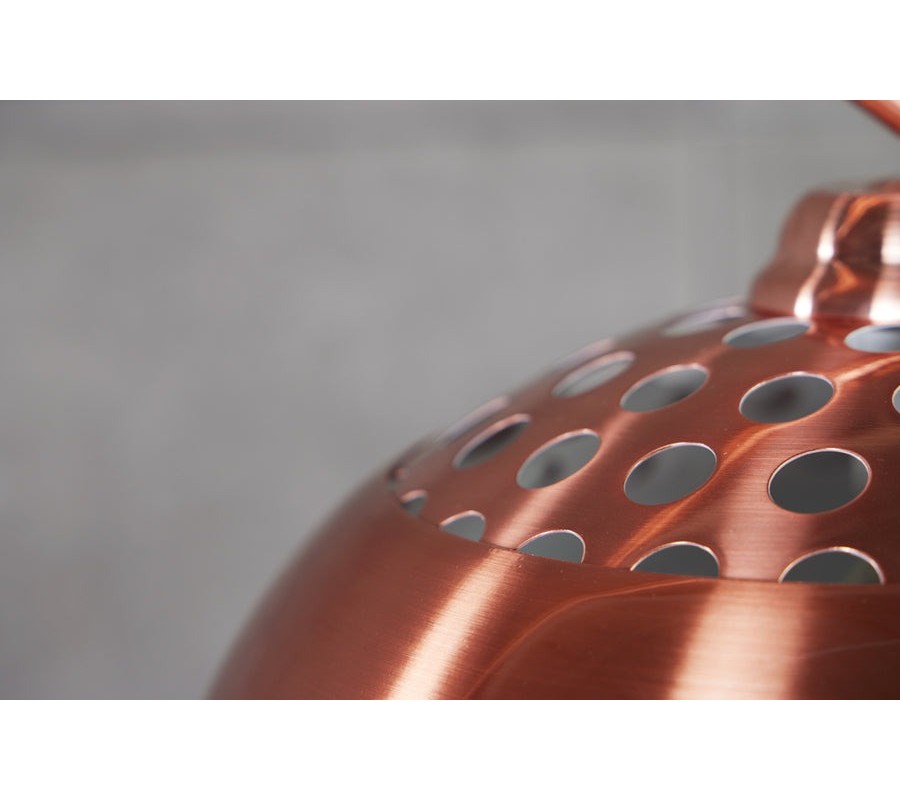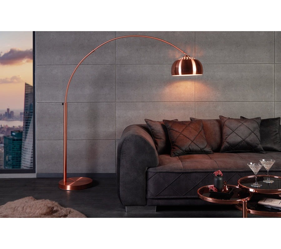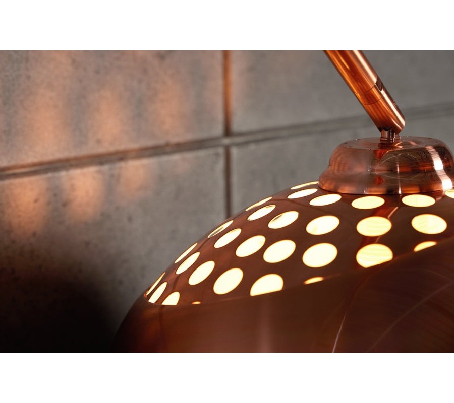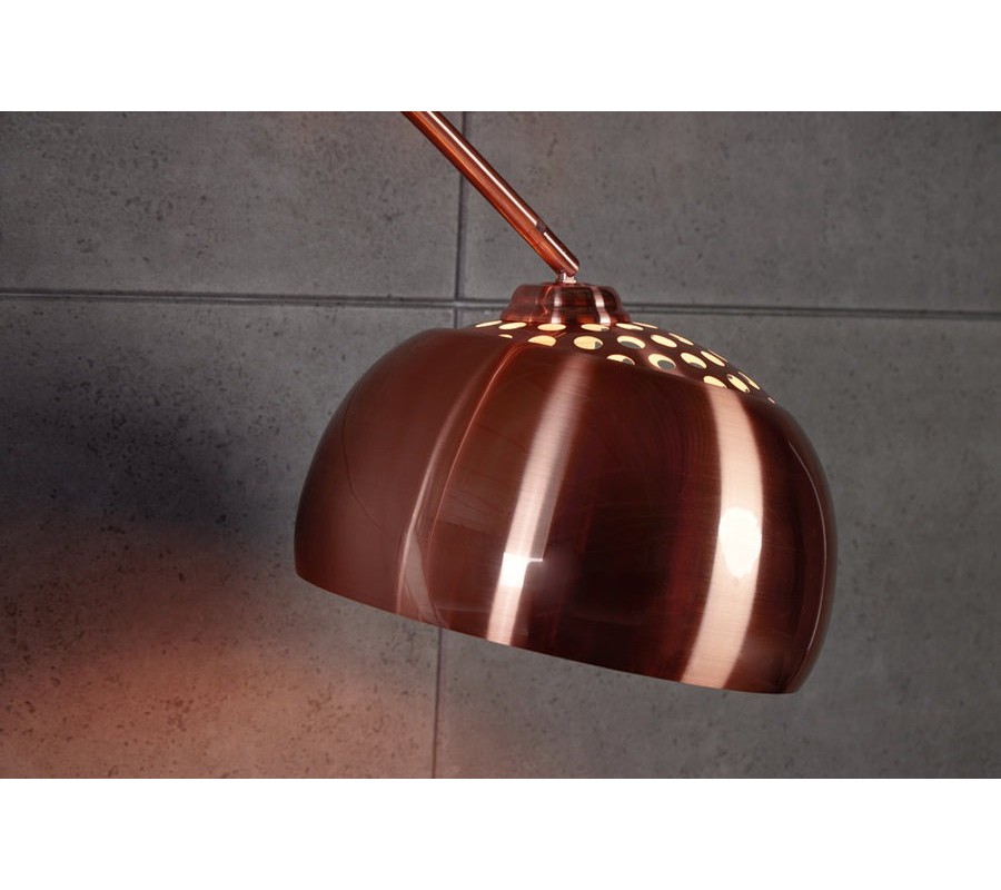 Designová moderní měděná stojící polohovatelná lampa Big Bow z kovu s kulatým stínítkem s perforací se zaoblenou nohou 210 cm