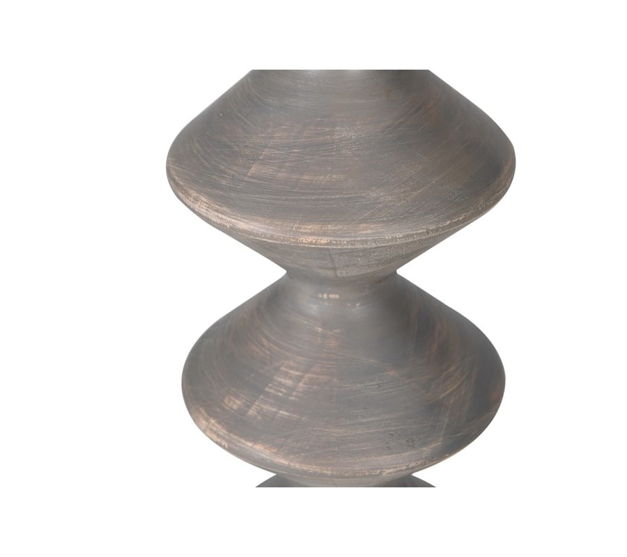 Stojící lampa Quart spojuje přírodní charakter s elegancí venkovského stylu. Její vysoká dřevěná noha zaujme jedinečným vyřezávaným designem, který tvoří symetricky tvarované válcovité segmenty připomínající rytmické vlny. Každý z nich má jemně zaoblené hrany a díky ručnímu opracování působí autenticky a řemeslně. Povrch lampy má decentní ošoupaný efekt na hranách výřezů, který zvýrazňuje její strukturu a dodává jí vintage patinu s přirozeným teplým tónem dřeva.