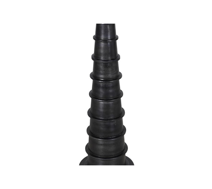 Stojící lampa Nero představuje výrazný designový prvek, který spojuje moderní jednoduchost s industriálním charakterem. Její vysoká kovová noha se plynule zužuje směrem vzhůru, přičemž povrch zdobíjemné výběžky v pravidelných odstupech, které dodávají lampě rytmus a plastickou hloubku. Celkový tvar působí jako elegantní kužel zakončený stabilní kulatou podstavou.