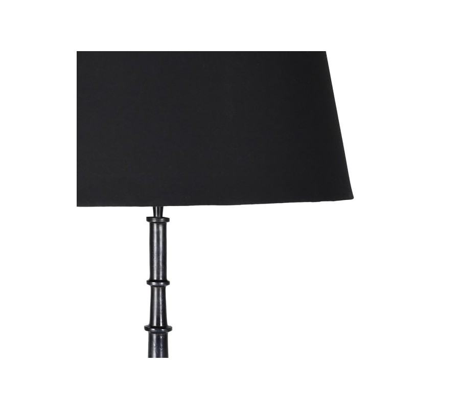Stínítko je vyrobeno ze lněné textilie v černé barvě a máválcovitý tvar s jemně rozšířenou spodní hranou. V kombinaci s matným kovovým tělem vytváří harmonický kontrast mezi texturou a materiálem. Světlo procházející látkou působí měkce, čímž vytváří útulnou atmosféru i v minimalistických interiérech.