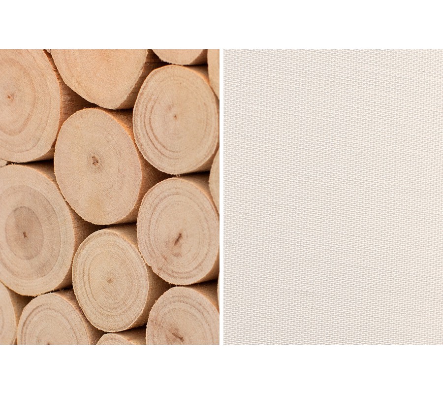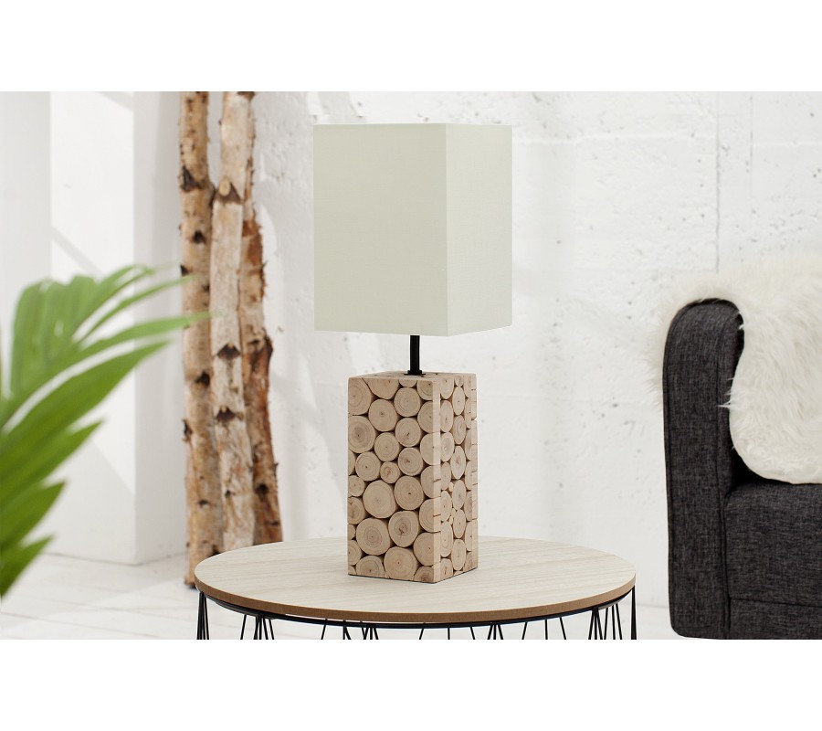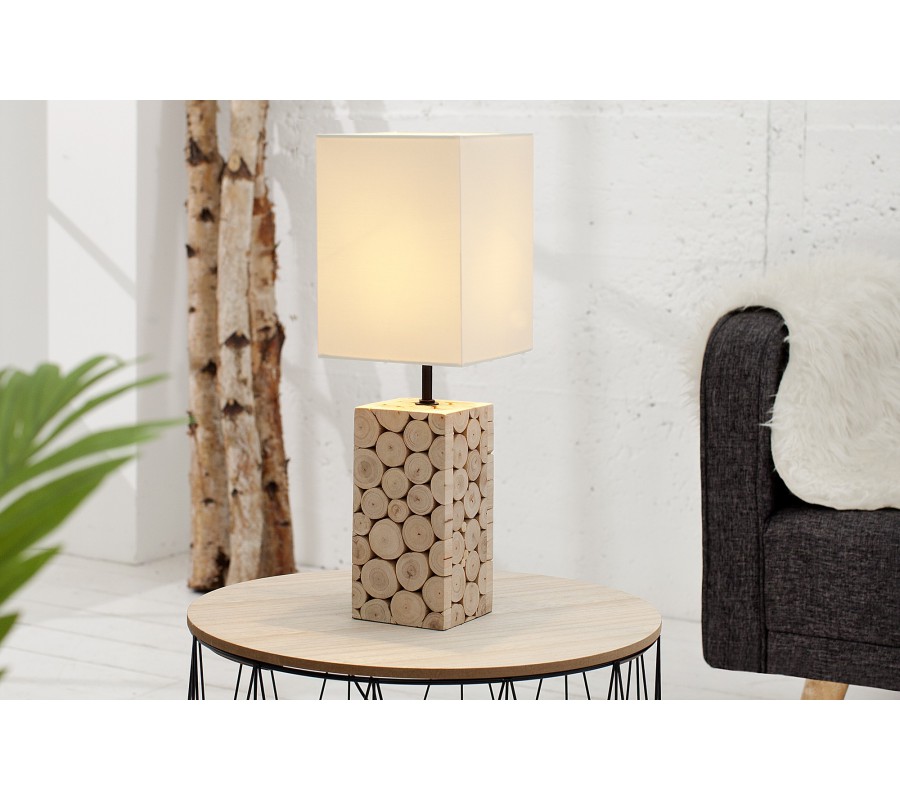 Stylová bílá lampa je unikátní pro svůj mozaikovitý design. Lampa je navržena pro maximální výkon 40 W, E14. Materiál: masivní eukalypt, kov, len.