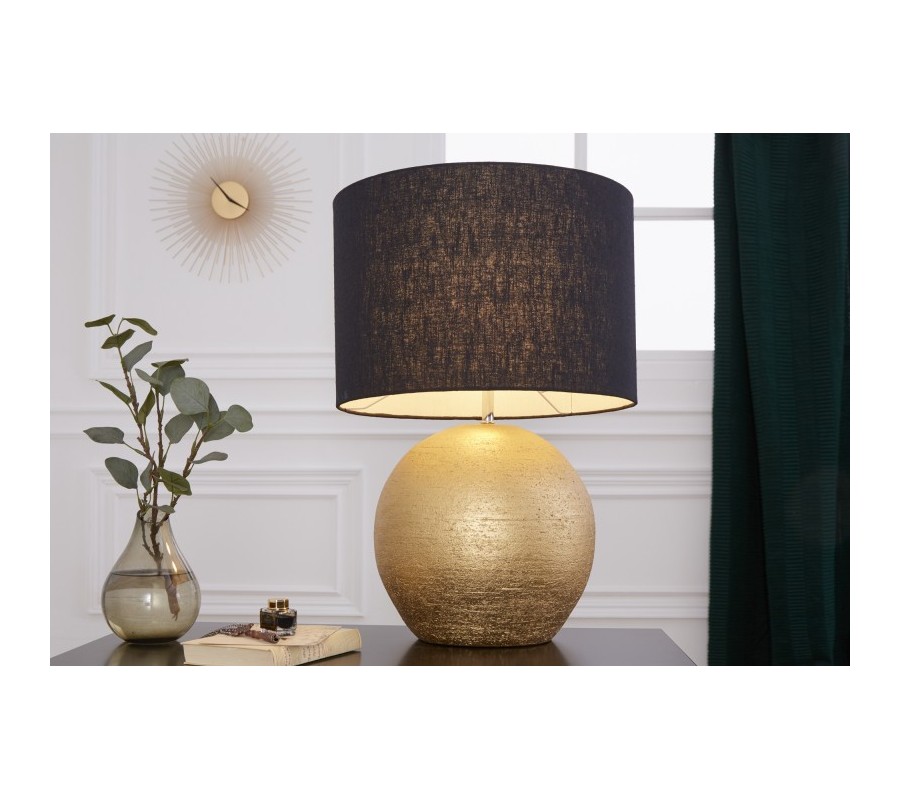 Jedinečná designová stolní lampa Isla je vhodným kouskem do moderního interiéru, který byste rádi oživili stylovým svítidlem. Nese se ve stylu art-deco a do vaší ložnice či obývacího pokoje vnese luxusní nádech. Disponuje černým stínítkem, které přiměřeně tlumí světlo, a kulatou podstavou z terakoty ve zlaté barvě. Tato kombinace ve vašem domově zaručeně nezanikne a zpříjemní vám atmosféru všedních dní. Dá se skvěle doladit k tmavšímu dřevěnému nábytku a výraznějším barvám. Vhodné jsou žárovky E27 max. 60W energetických tříd A ++ až E. Dodáváme bez žárovky.