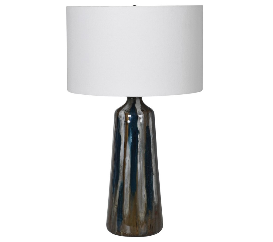 Vintage skleněná šedo-bílá stolní lampa Myrcella s lesklým popelovým tělem a bavlněným stínítkem 70cm