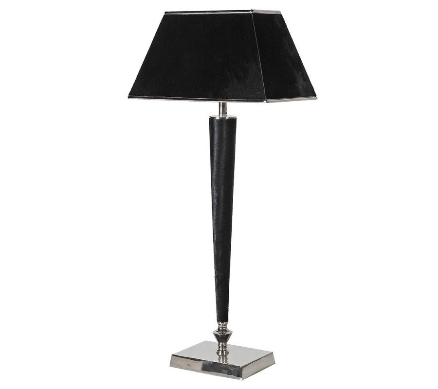 Moderní vysoká stolní lampa Asin s válcovou nohou a stříbrnou podstavou as hranatým černým stínítkem 88 cm