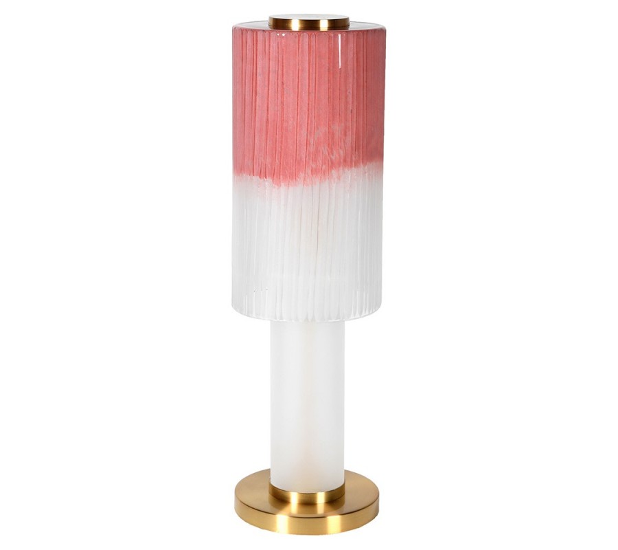 Moderní glamour stolní lampa Spiral s růžovo-bílým skleněným stínítkem a zlatou podstavou 66 cm