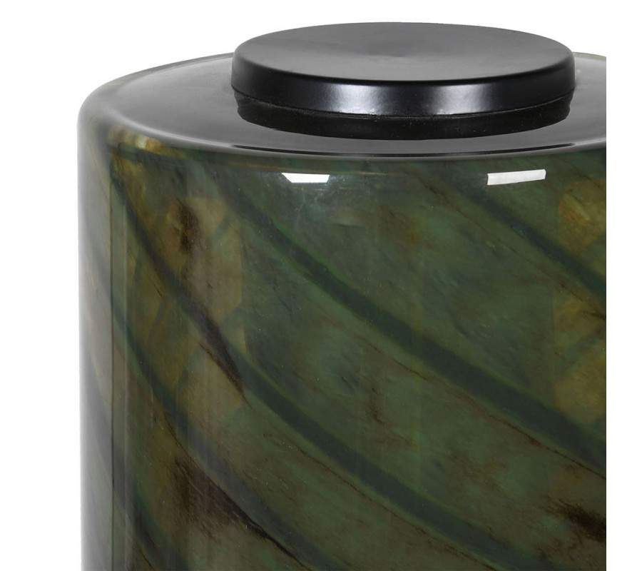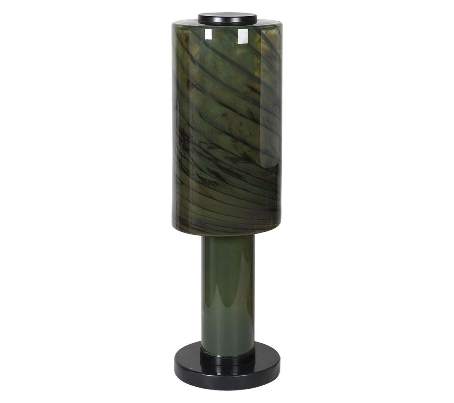 Moderní skleněná stolní lampa Spiral v tmavě zelené barvě kulatou kovovou podstavou 69 cm