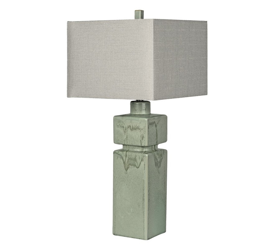 Moderní keramická stolní lampa Zhejiang s hranatou nohou se zelenou seladonovou glazurou a béžovým stínítkem 81 cm
