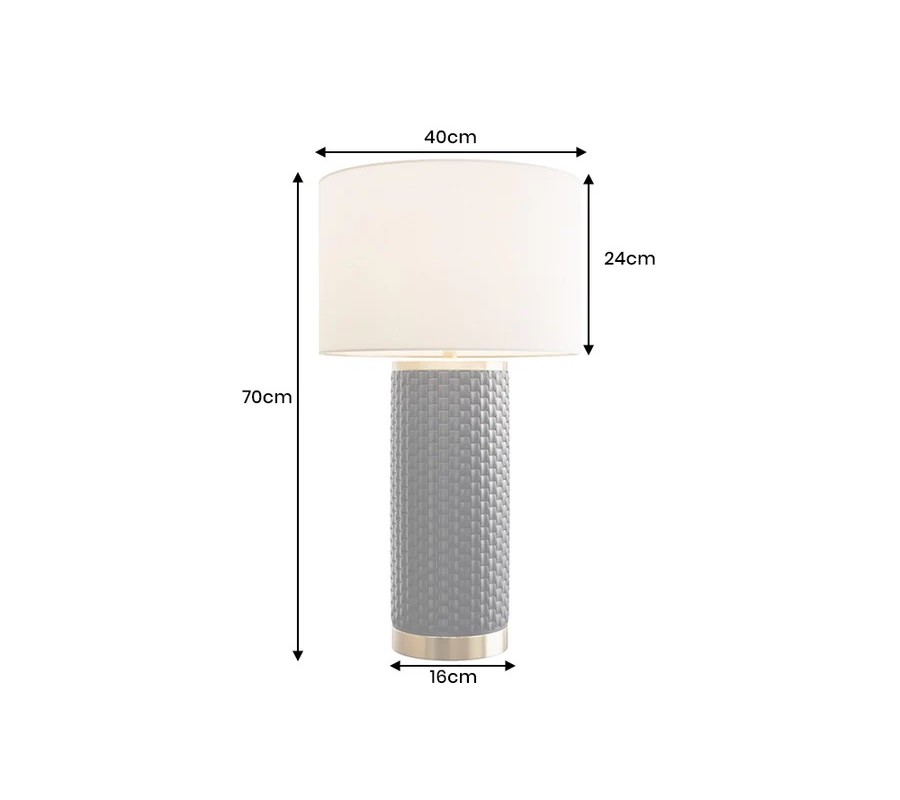 Stínítko má jednoduchý válcovitý tvar a nechává naplno vyniknout design podstavy. Je vyrobeno z kombinace umělého vlákna a bavlny s jemným hladkým tkaním. Vnější strana má černou barvu a vnitřek je bílý, což zajistí optimální osvětlení.