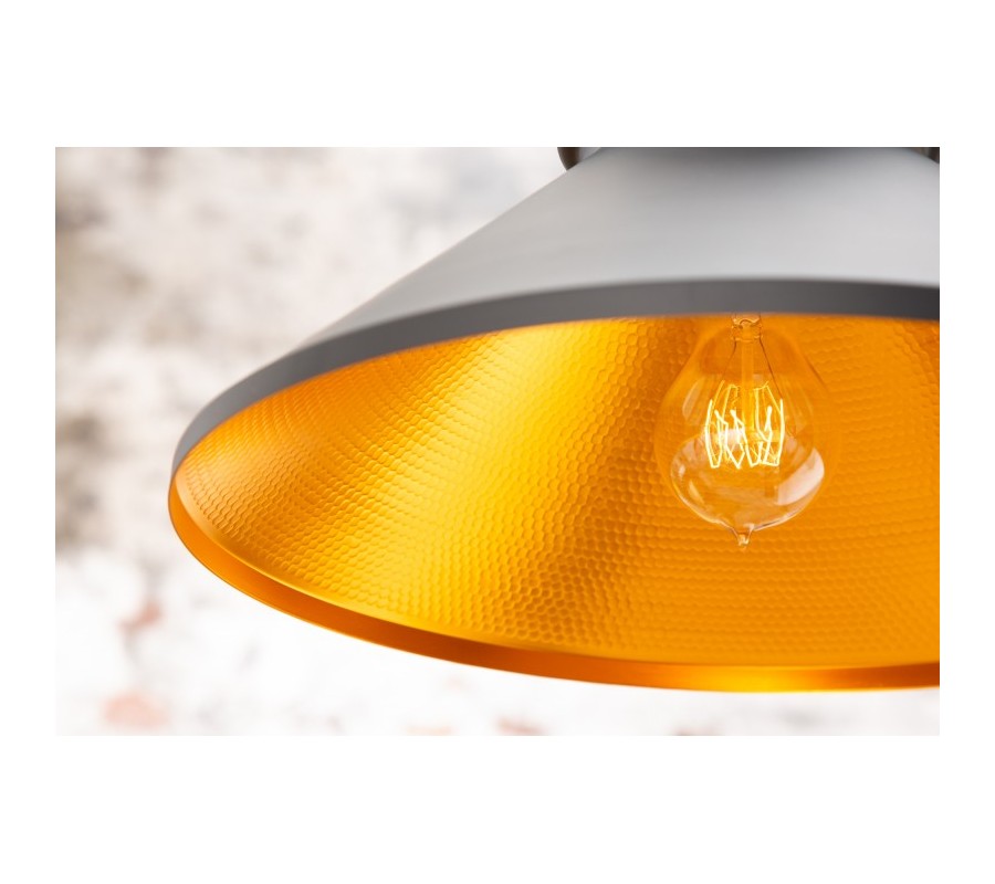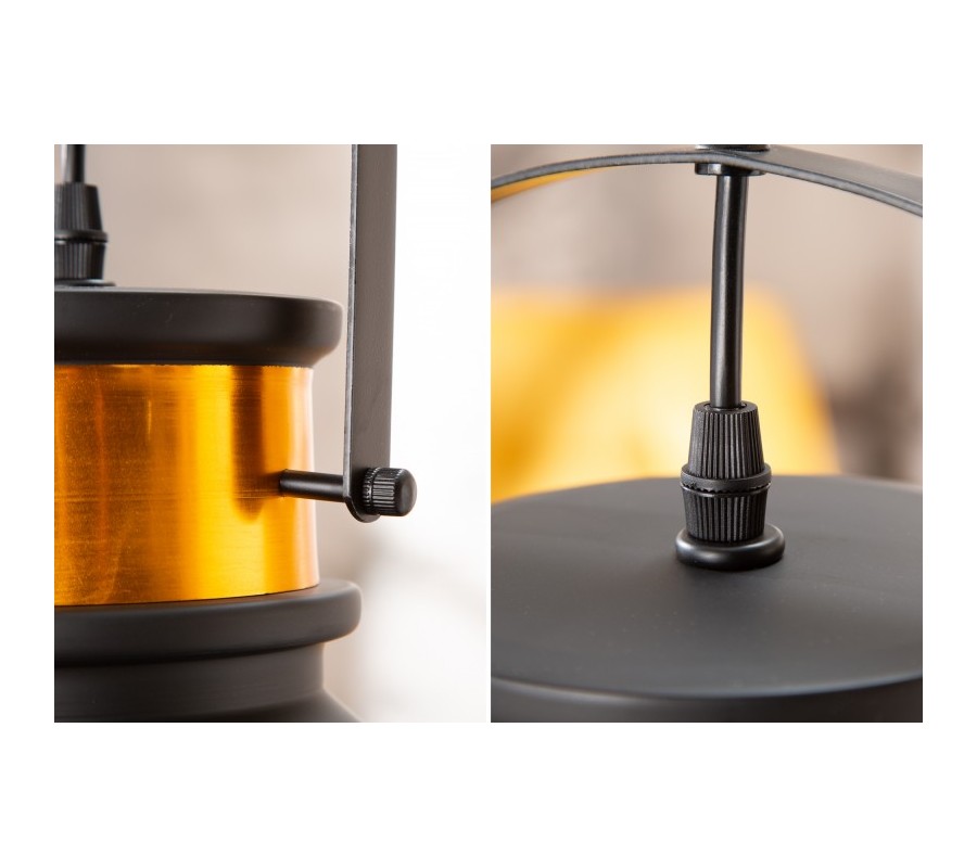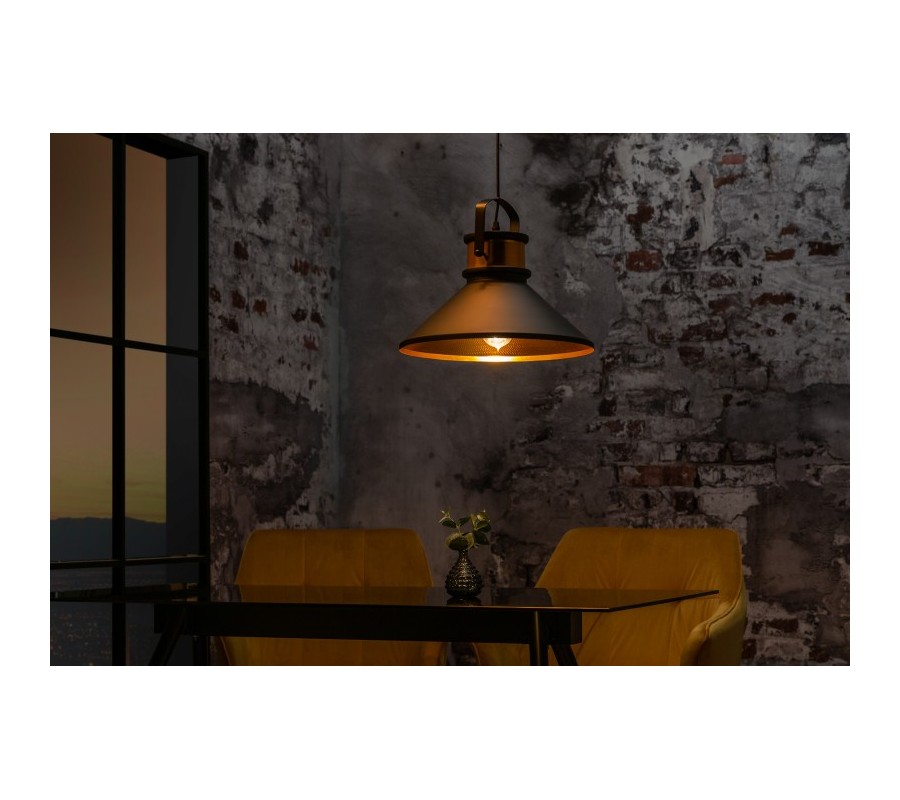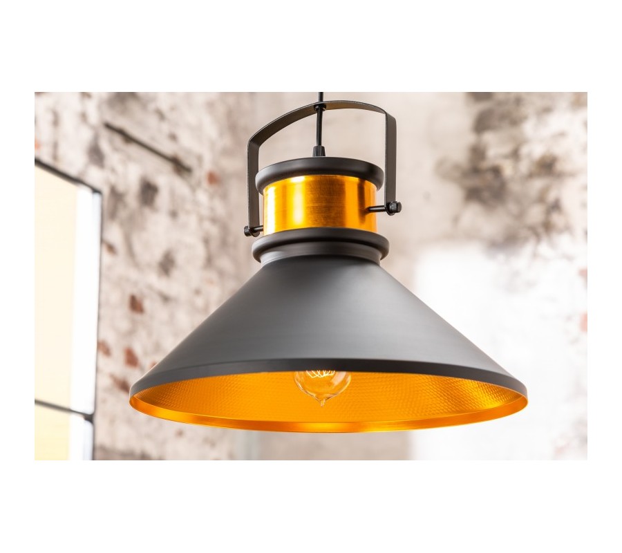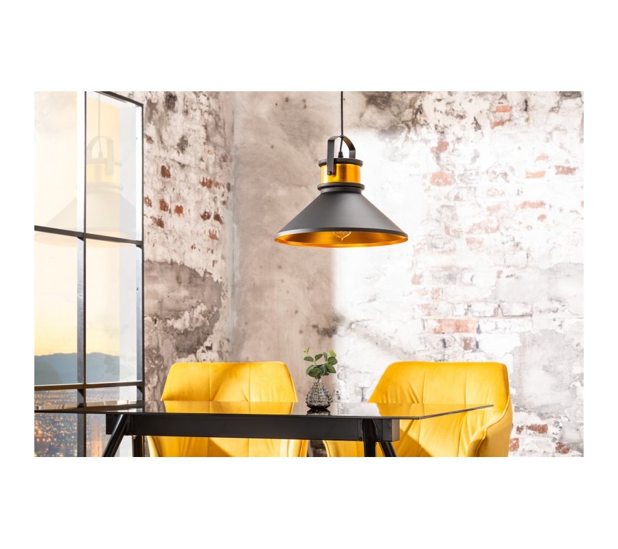 Designová lampa LUZ IV je skvělým společníkem do každého stylového interiéru. Vynikne zejména v industriálně laděných prostorech v světlejších barvách. Její zajímavý bude skvěle vyjímat například nad stolem v jídelně či v obýváku. Provedení v zlato-černé barvě působí luxusně a zároveň do vašeho domova vnese průmyslový nádech. Skvěle vynikne v kombinaci s výraznějšími barvami jako žlutá, zelená nebo černá.