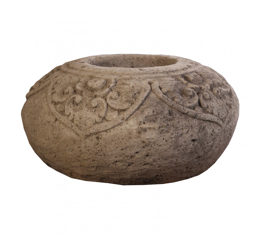 Designová válcovitá hliněná nádoba Anfora, která v římsko-řecké kultuře sloužila na přepravu jídla, ryb nebo vína. Nádoba je zdobená ornamenty.