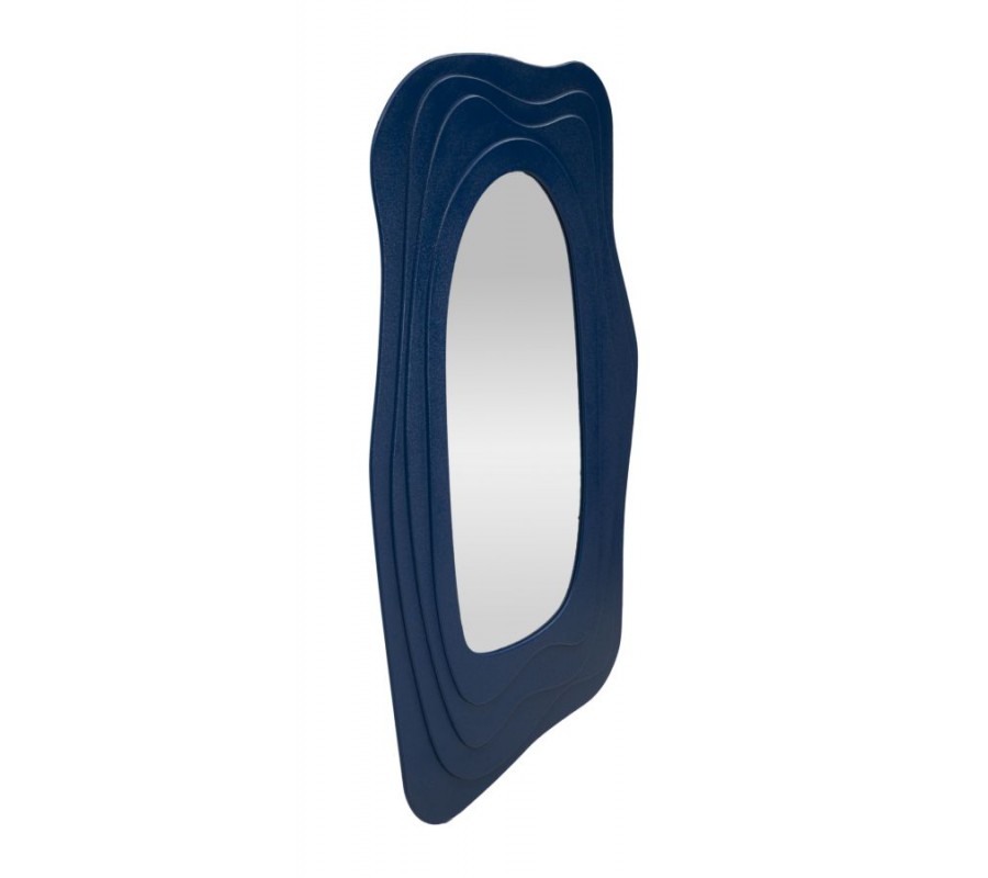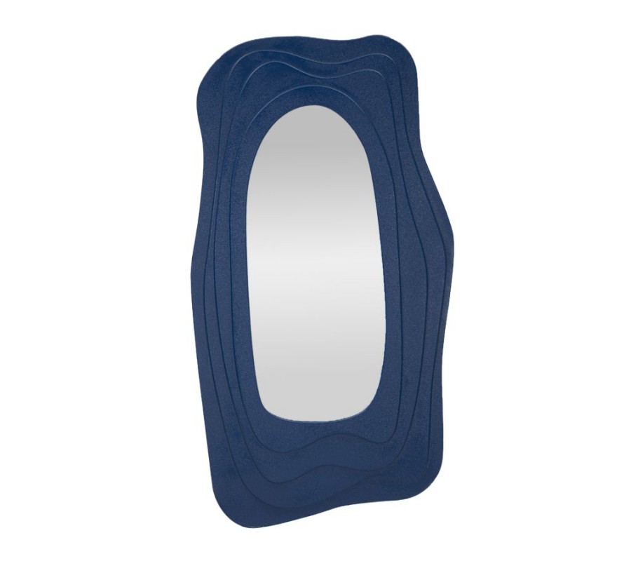 Zrcadlo Landa je výrazným designovým prvkem s originálním organickým tvarem, který připomíná přirozené terénní linie nebo plynulý pohyb vody. Jeho vícevrstvý rám z dýhovaného dřeva v syté námořnické modré barvě vytváří zajímavý hloubkový efekt, který v prostoru působí výtvarně a dodává mu strukturu i dynamiku. Zrcadlová plocha má oválný tvar, jemně zapuštěný do rámu. Povrch rámu je matný, hladký a jemně strukturovaný, což viditelně vyniká zejména při detailním pohledu. Tento speciální nátěr zvýrazňuje vrstvení rámu a dodává mu řemeslný charakter. Rám i zadní deska jsou z dýhovaného dřeva, díky čemuž je zrcadlo pevné, stabilní a vhodné i do frekventovaných interiérů. Spojení originálního tvaru, kvalitních materiálů a precizního zpracování z něj činí poutavý designový solitér. Zrcadlo Landa se hodí do moderních, minimalistických i kreativně laděných interiérů – vynikne v obýváku, ložnici, chodbě nebo ateliéru. Díky své syté modré barvě může působit jako výrazný akcent na světlé stěně nebo elegantně splynout s tmavšími tóny v prostoru. Skvěle se kombinuje s nábytkem v odstínech šedé, černé, bílé či přírodního dřeva, jakož is doplňky s kovovými detaily ve zlaté nebo mosazné barvě. Harmonicky jej doplní textilie ze lnu, sametu nebo bouclé, čímž vznikne interiér s charakterem, jemností i výtvarnou hloubkou.