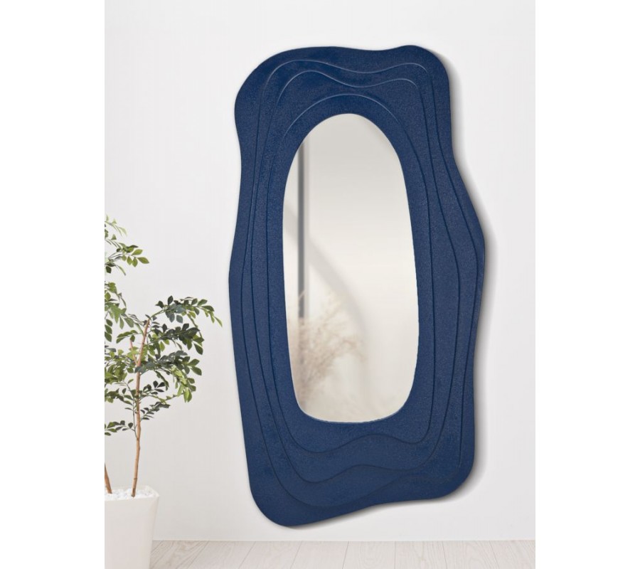 Moderní designové nástěnné zrcadlo Landa s atypickým vlnitým vrstveným dřevěným rámem v námořnické modré barvě 165 cm