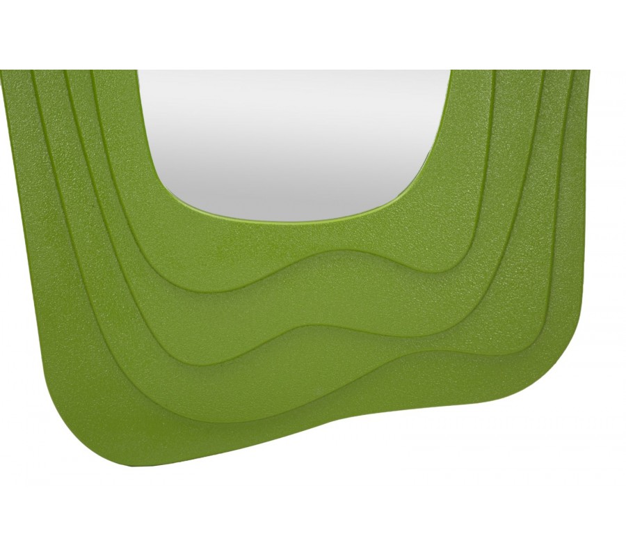 Moderní designové nástěnné atypické zrcadlo Landa s efektem vrstvení se zeleným dřevěným rámem 165 cm