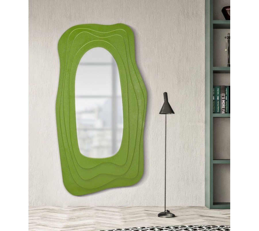 Zrcadlo Landa je originální designový kousek, který zaujme hravým a zároveň sofistikovaným tvarem s organickými křivkami a vrstveným efektem. Jeho sytě zelený povrch s jemně strukturovaným matným nátěrem dodává interiéru svěžest, energii a jemný přírodní nádech. Zrcadlová plocha má oválný tvar, který vytváří příjemný kontrast s asymetrickým rámem a umocňuje výtvarný dojem.