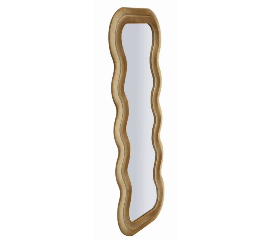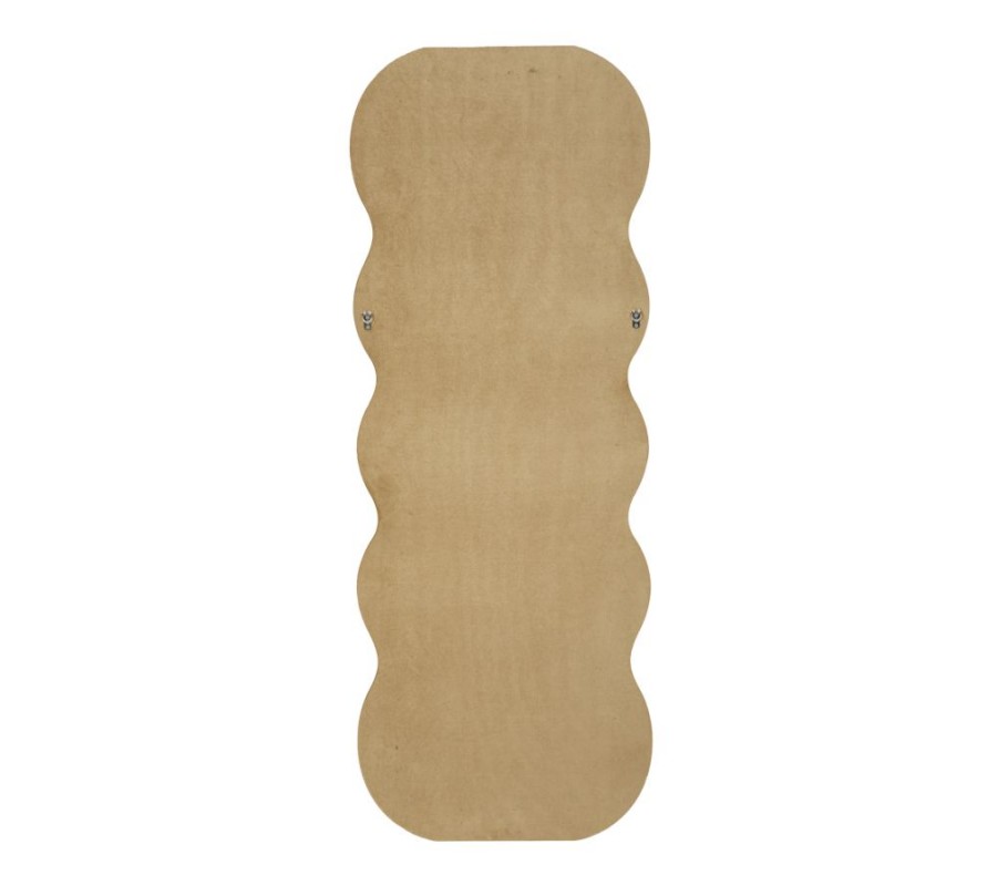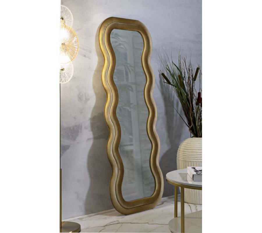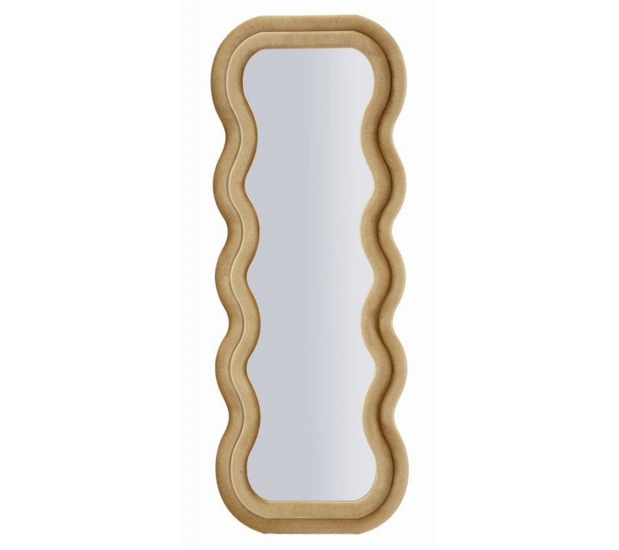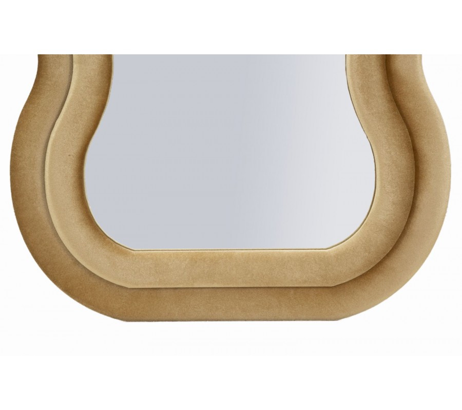 Moderní nástěnné zrcadlo Swan v obdélníkovém atypickém vlnitém tvaru s dvojitým rámem v béžovém sametovém potahu 160 cm
