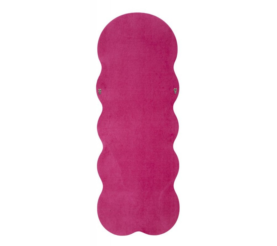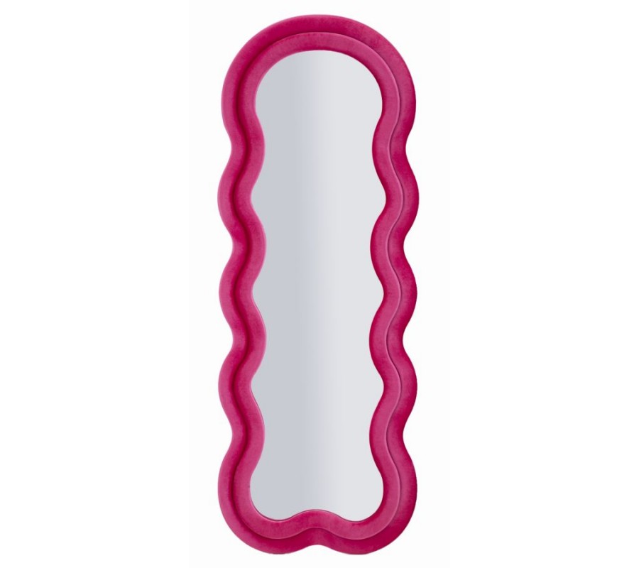Designové nástěnné růžové zrcadlo Swan s vlnitým rámem a klenutým vrchním obloukem se sametovým potahem 160 cm