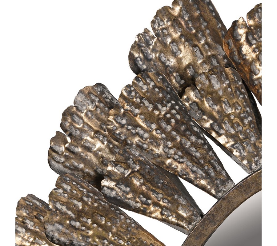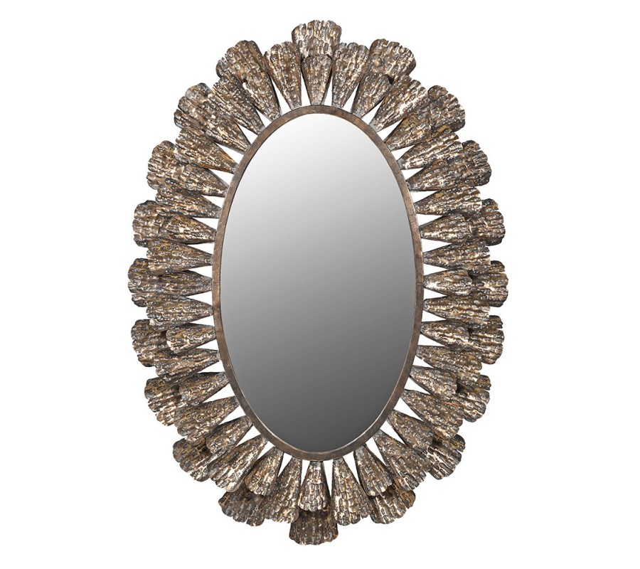 Má oválný tvar který působí harmonicky, rám je tvořen řadou detailně tvarovaných prvků připomínajících lístky nebo okvětní lupeny. Ty jsou rozloženy symetricky ve dvou řadách kolem celé zrcadlové plochy. Každý lístek má mírně zvlněný a plasticky vystouplý povrch, čímž vytváří nápaditý detail.