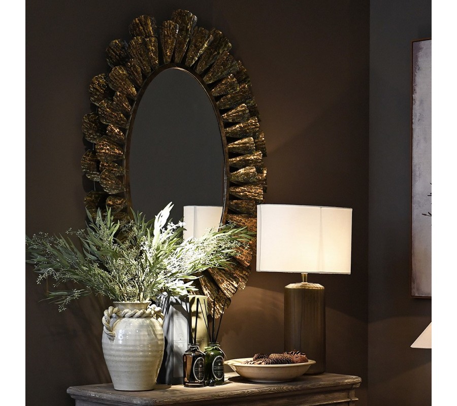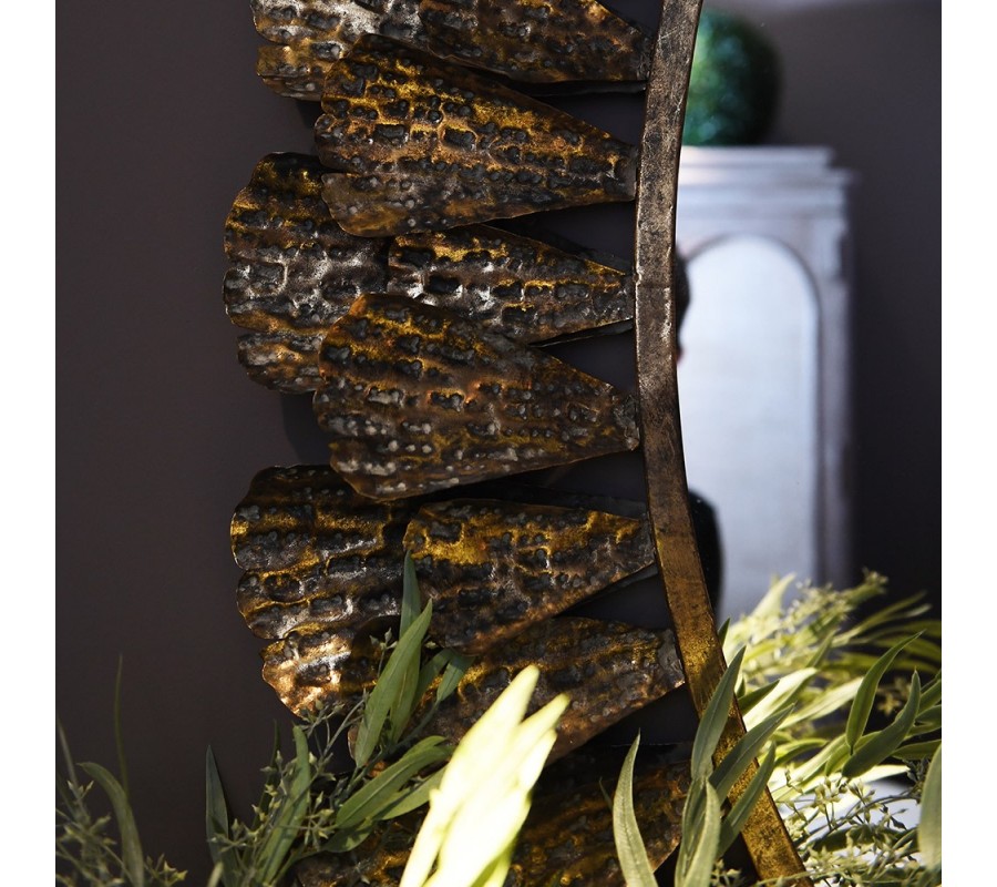 Glamour oválné nástěnné zrcadlo Levandro s rámem z kovu v bronzové barvě s dekorativními lístky 132 cm