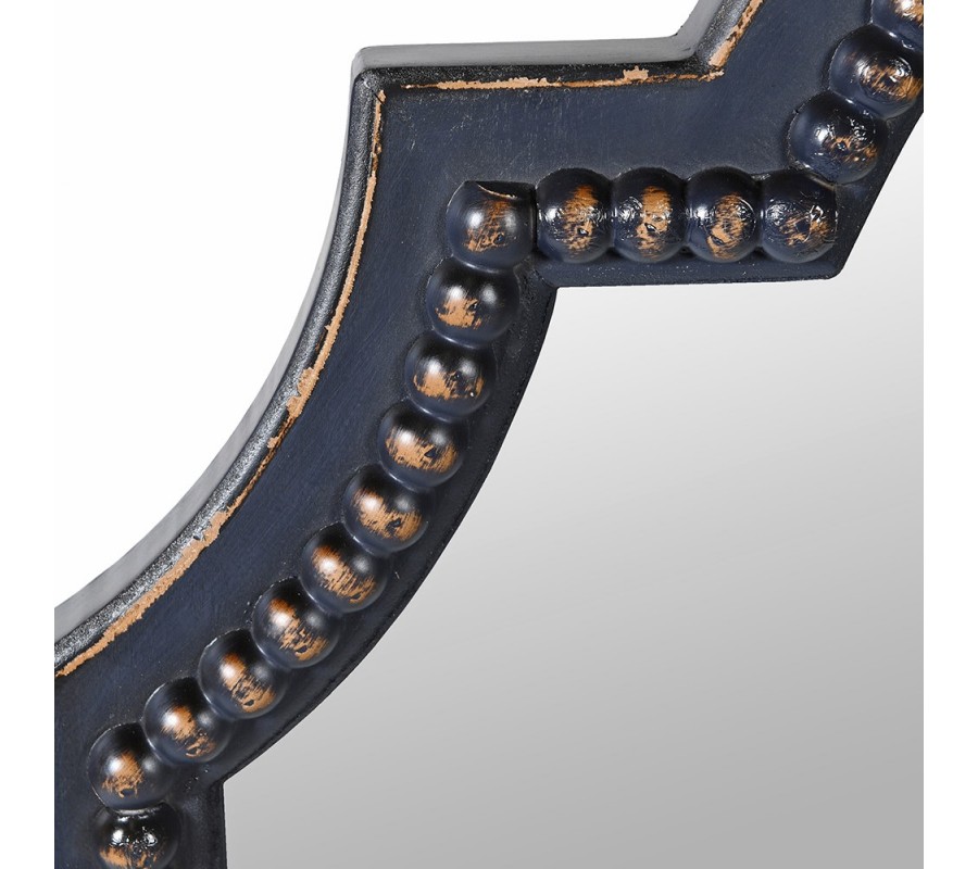 Designové vintage nástěnné zrcadlo Noor s atypickým rámem orientálního tvaru v námořnické modré barvě s patinou 113 cm