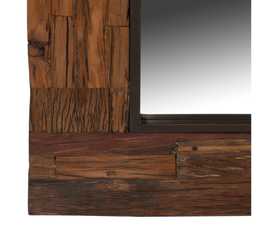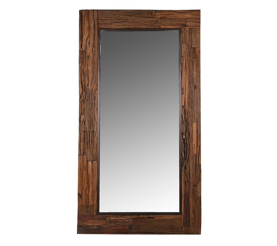 Luxusní masivní venkovské obdélníkové nástěnné zrcadlo Ravello v hnědé barvě z recyklovaného dřeva 220 cm
