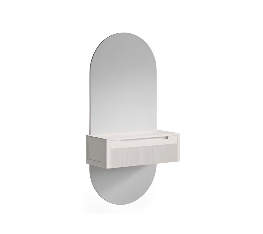 Luxusní nástěnné moderní zrcadlo Tallin je výjimečný designový prvek, který spojuje elegantní funkčnost s jemným dekorativním výrazem. Oválný tvar zrcadla působí měkce a nadčasově, díky čemuž se snadno začlení do moderních i světle laděných interiérů. Pod zrcadlem se nachází praktickázávěsná zásuvka v obdélníkovém tvaru, která je vyrobena z dubového dřeva v bílé barvě s jemným vybledlým efektem. Tento povrch dodává kousku přirozenou hloubku a decentní vintage nádech bez ztráty moderního charakteru.
